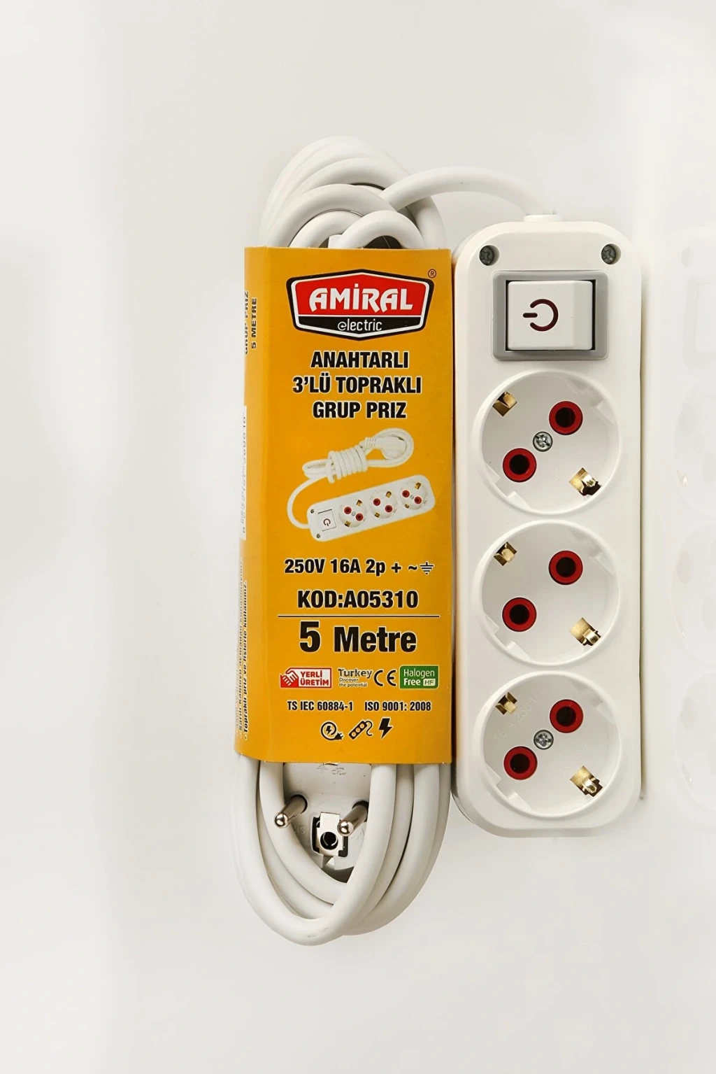 3 lü Topraklı Anahtarlı 5 Metre Kablolu Grup Priz