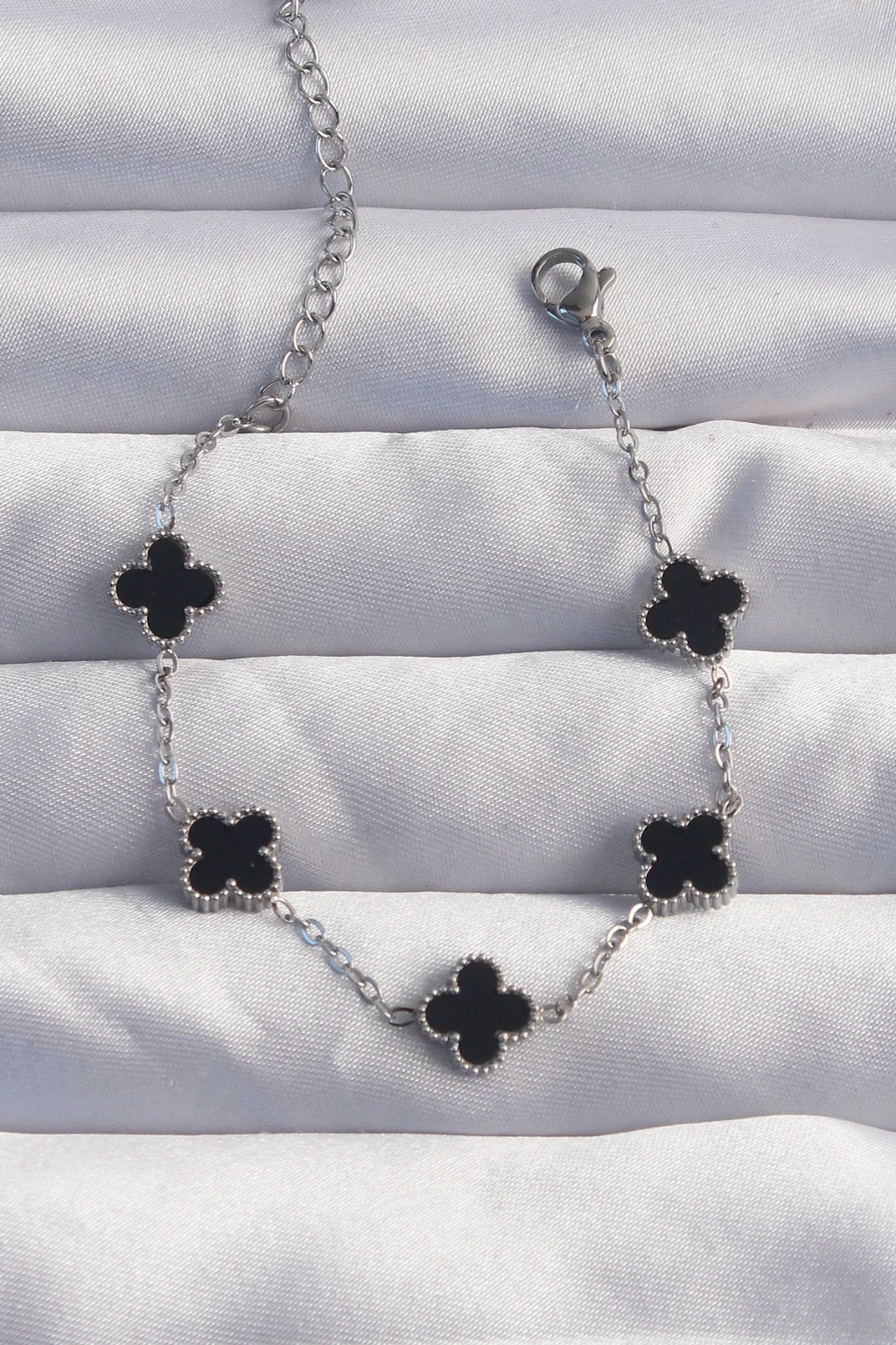 316L Çelik Baby Boy Gümüş Renk Siyah Mineli Yonca Bileklik - TJ-BB6275