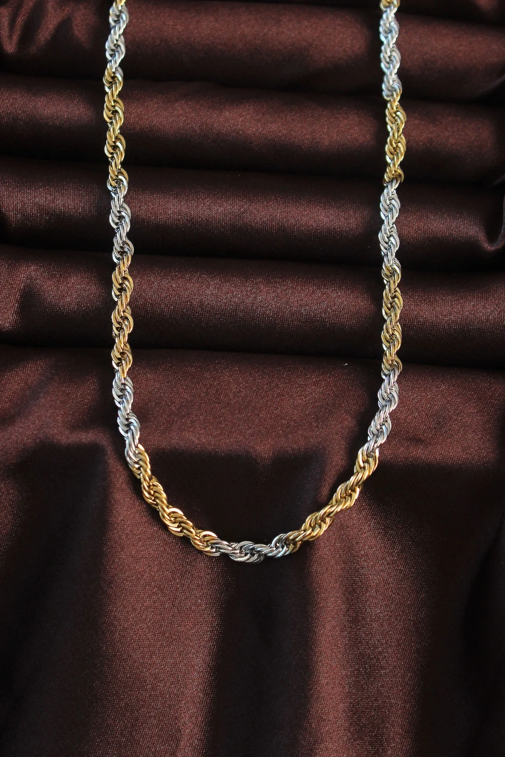316L Çelik Çift Renk İnce Arnavut Zinciri Tasarımlı Kolye - TJ-ERK1366