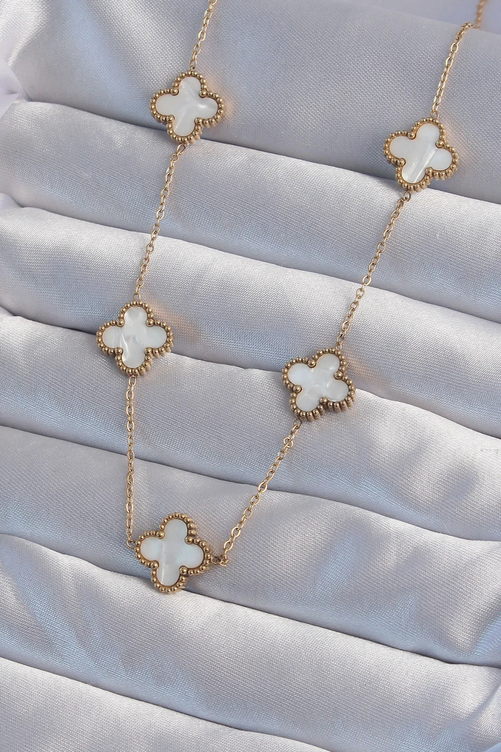 316L Çelik Gold Renk Beyaz Sedefli Yonca Kolye - TJ-BKO8996