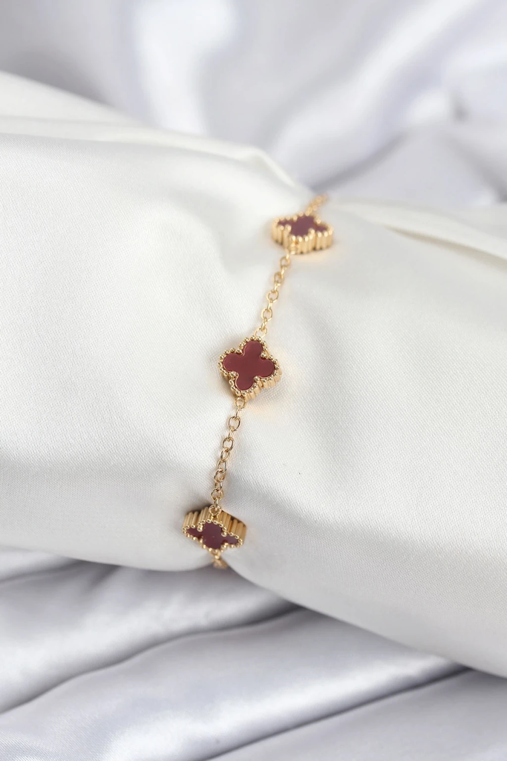 316L Çelik Gold Renk Bordo Baby Boy Yonca Kadın Bileklik - TJ-BB7950