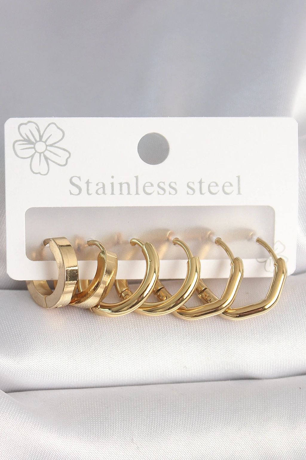 316L Çelik Gold Renk Geometrik Halka Model Kadın Küpe Seti - TJ-BKP10391