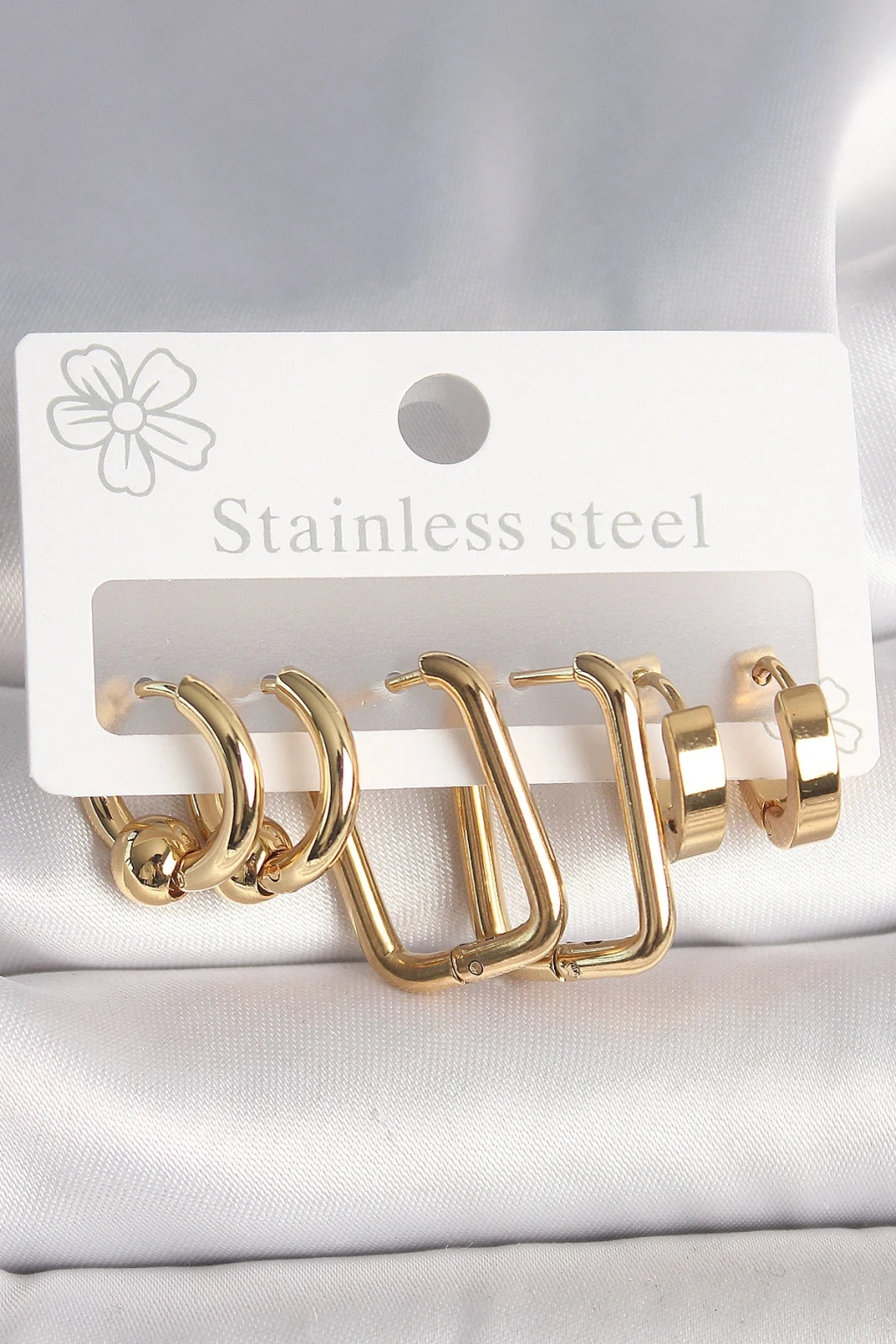 316L Çelik Gold Renk Halka Kare Model Kadın Küpe Seti - TJ-BKP10385