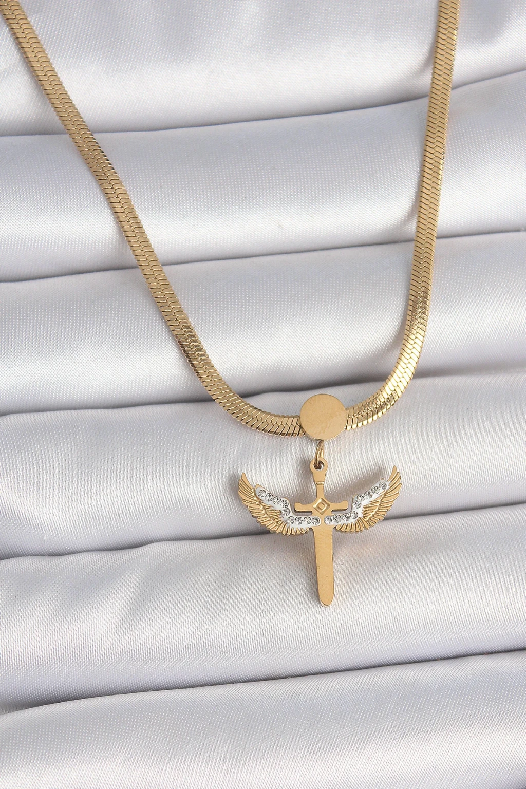 316L Çelik Gold Renk İtalyan Zincir Zirkon Taş Detaylı Mikail Model Kadın Kolye - TJ-BKO10123