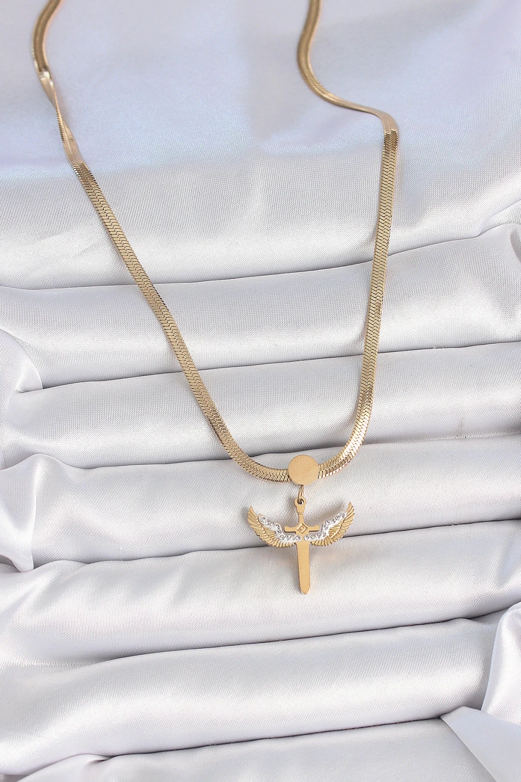316L Çelik Gold Renk İşlemeli Vintage Kolye - TJ-BKO9055