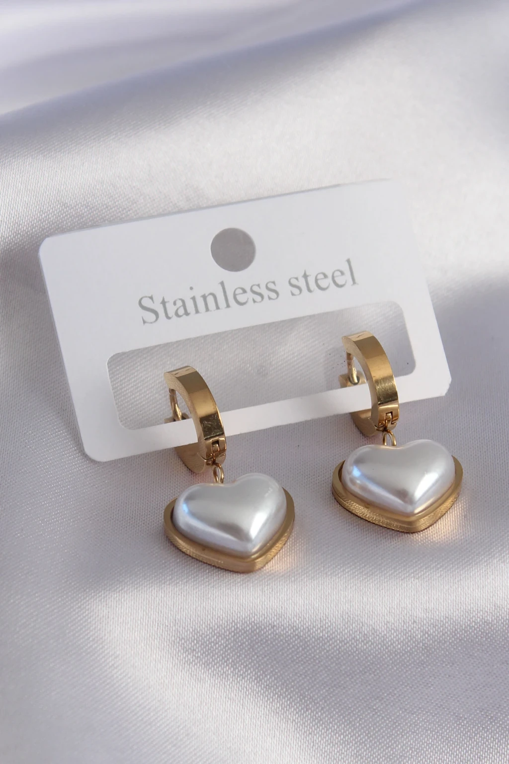 316L Çelik Gold Renk Kalp Model Kadın Küpe - TJ-BKP7458