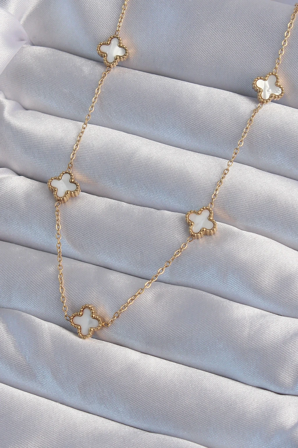 316L Çelik Gold Renk Minimal Beyaz Sedefli Yonca Kolye - TJ-BKO9002