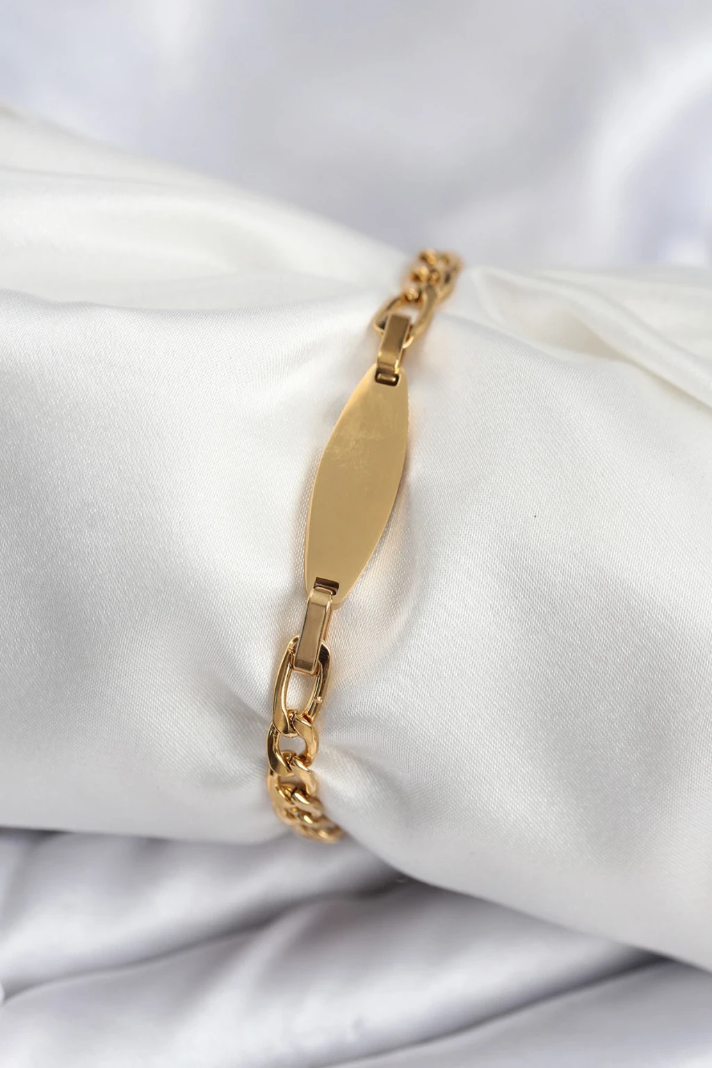 316L Çelik Gold Renk Oval Yazı Yazmaya Uygun Kadın Bileklik - TJ-BB7917