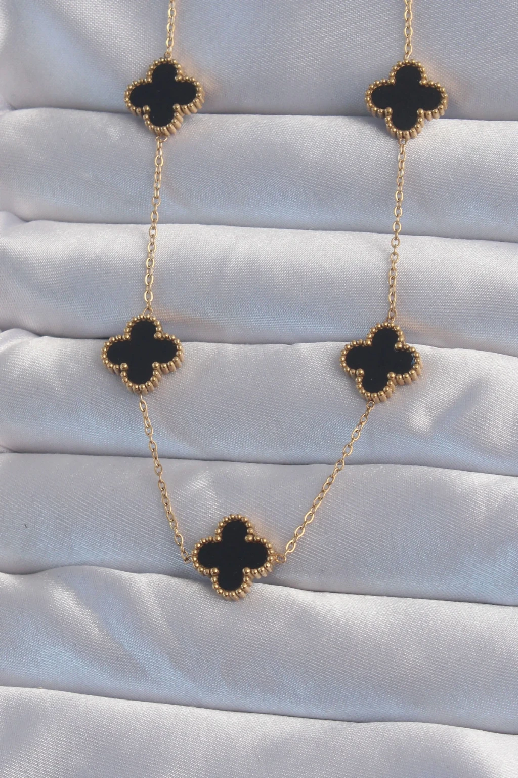 316L Çelik Gold Renk Siyah Mineli Yonca Kolye - TJ-BKO8998