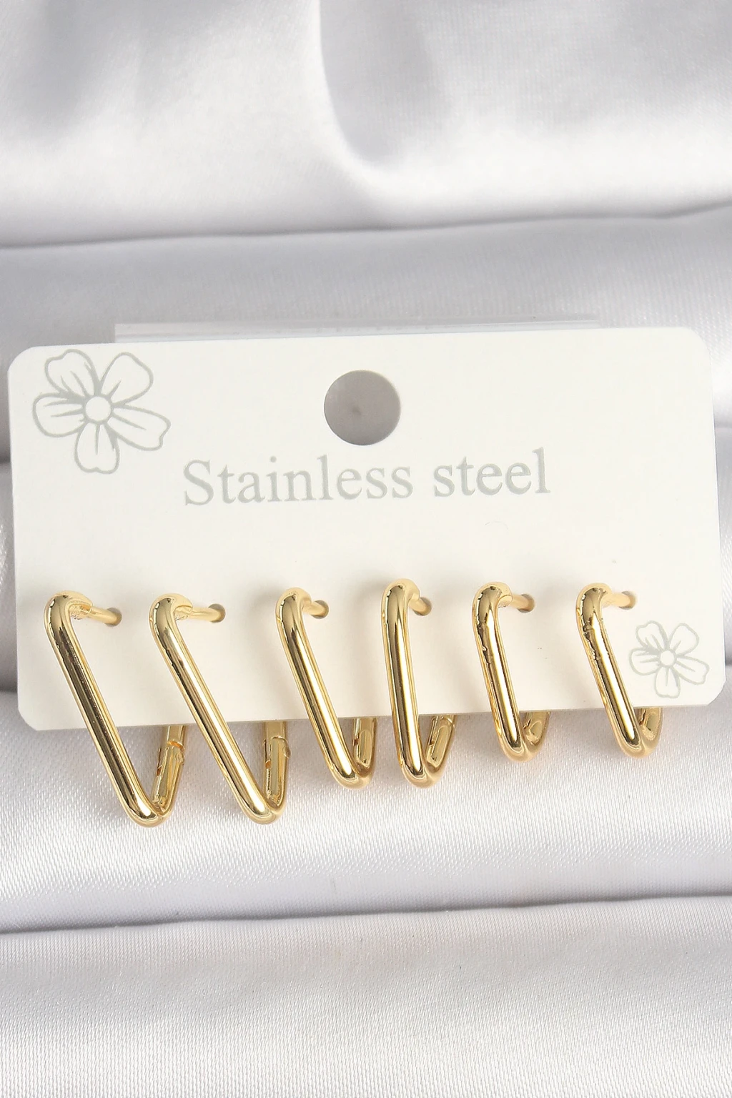 316L Çelik Gold Renk Üçgen Model Kadın Küpe Seti - TJ-BKP10350