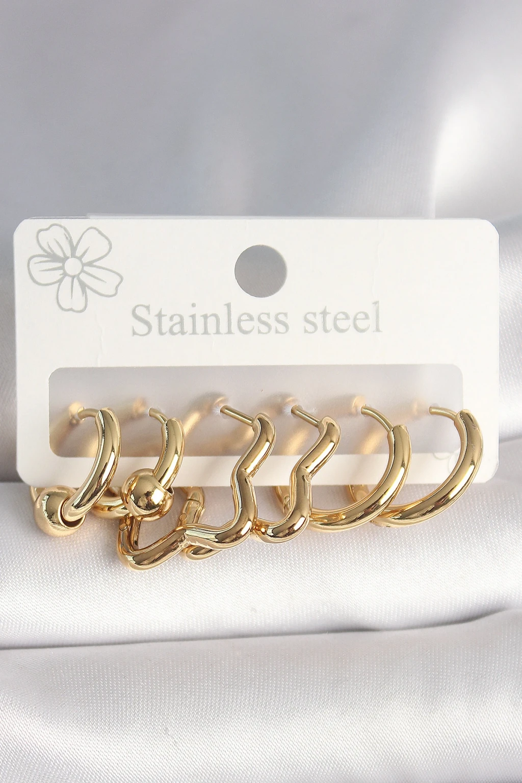 316L Çelik Gold Renk Yıldız Halka Model Kadın Küpe Seti - TJ-BKP10388