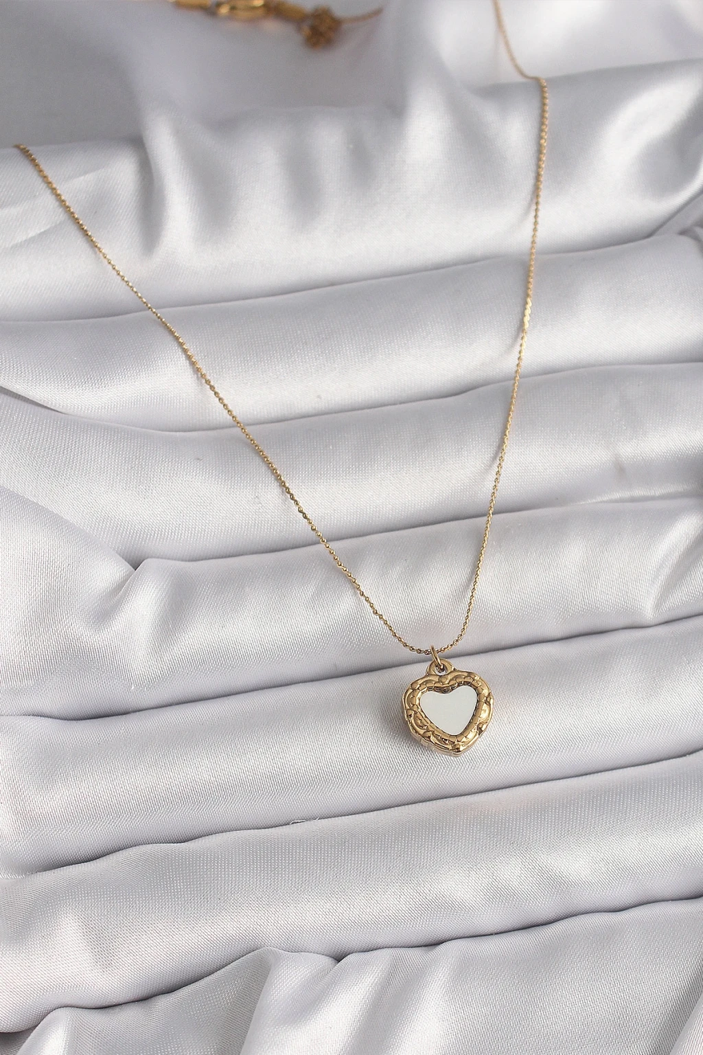 316L Çelik Gold Renk Zincir Aynalı Kalp Model Kadın Kolye - TJ-BKO9784