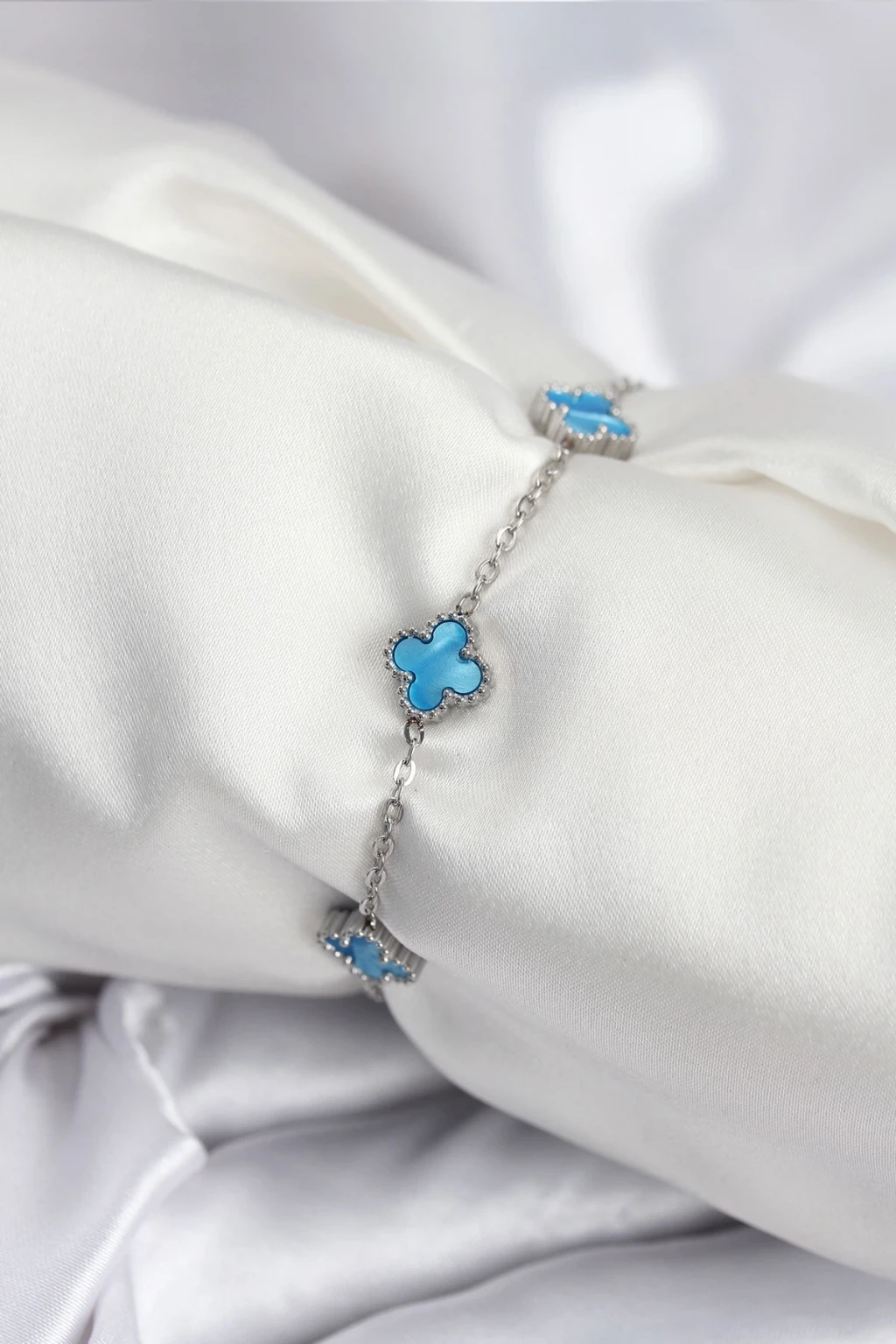 316L Çelik Gümüş Renk Buz Mavisi Baby Boy Yonca Kadın Bileklik - TJ-BB7949