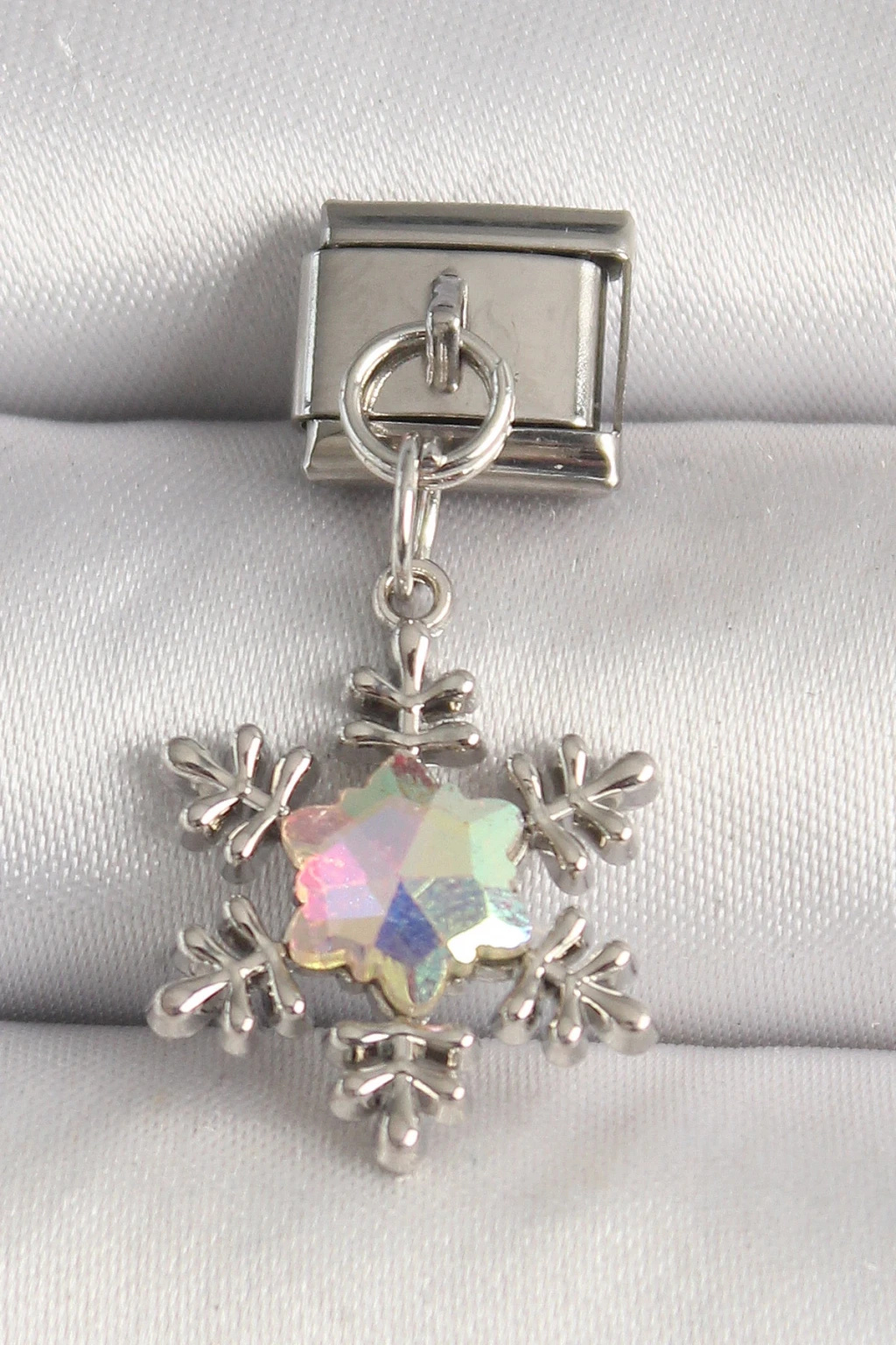 316L Çelik Gümüş Renk Hologram Mineli Kar Tanesi Model Nomination Charm - TJ-BC1272