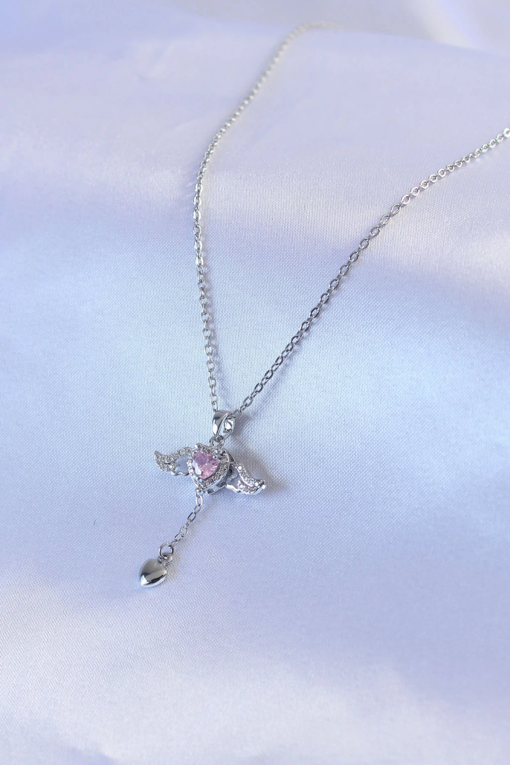 316L Çelik Gümüş Renk Kanatlı Kalp Figür Zirkon Taş Detay Kadın Koyle - TJ-BKO7451