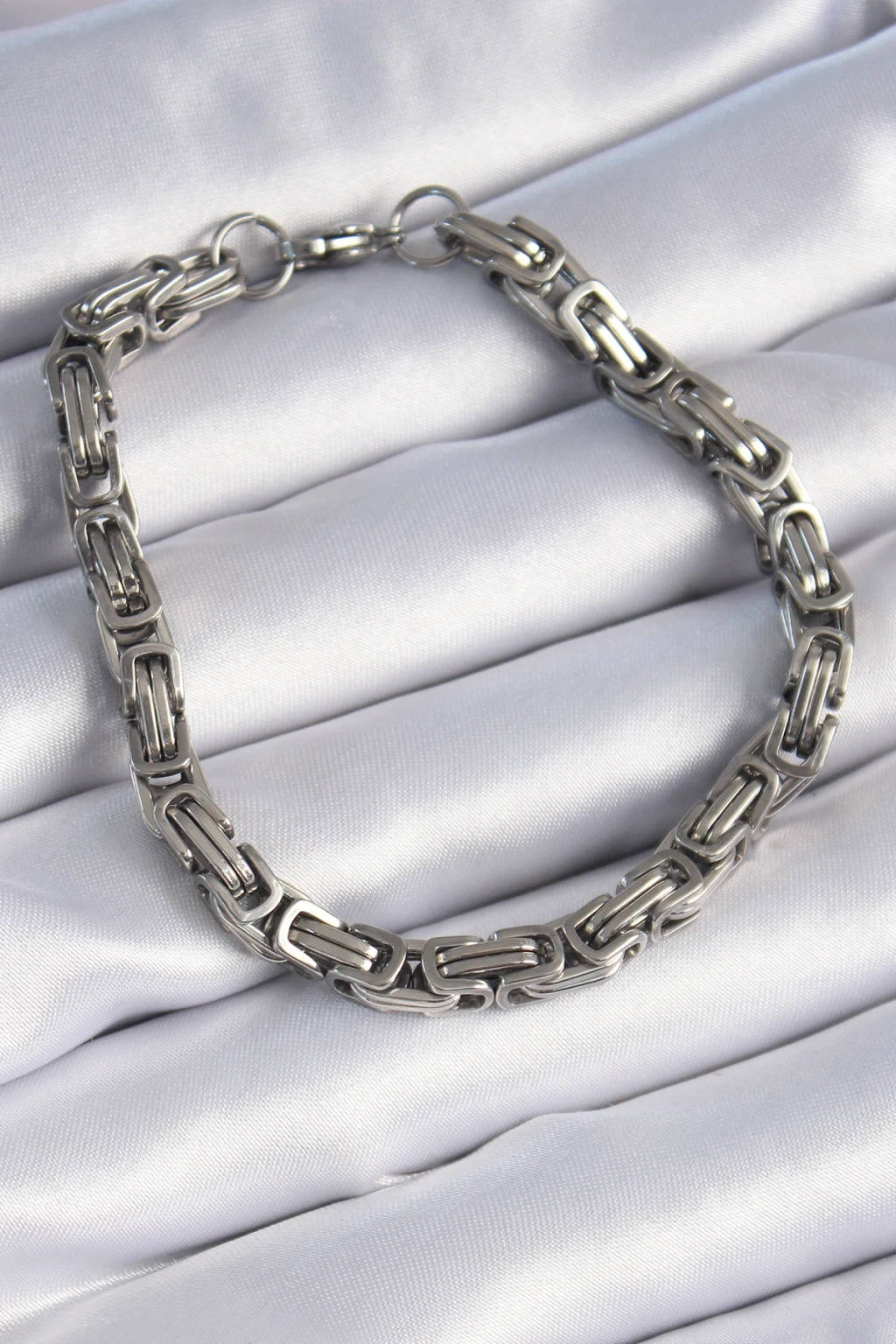 316L Çelik Gümüş Renk Kral Zincir Model Erkek Bileklik - TJ-EB3692