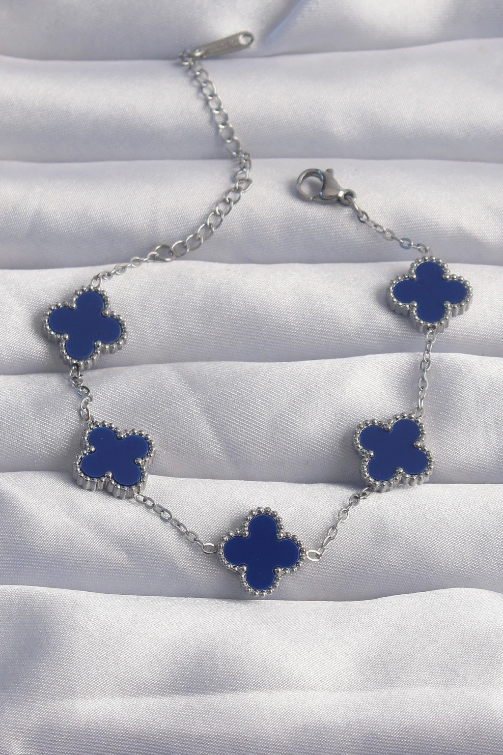 316L Çelik Gümüş Renk Mavi Mineli Yonca Bileklik - TJ-BB6267