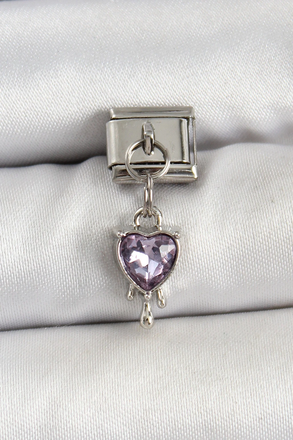 316L Çelik Gümüş Renk Mor Kalp Model Nomination Charm - TJ-BC1490