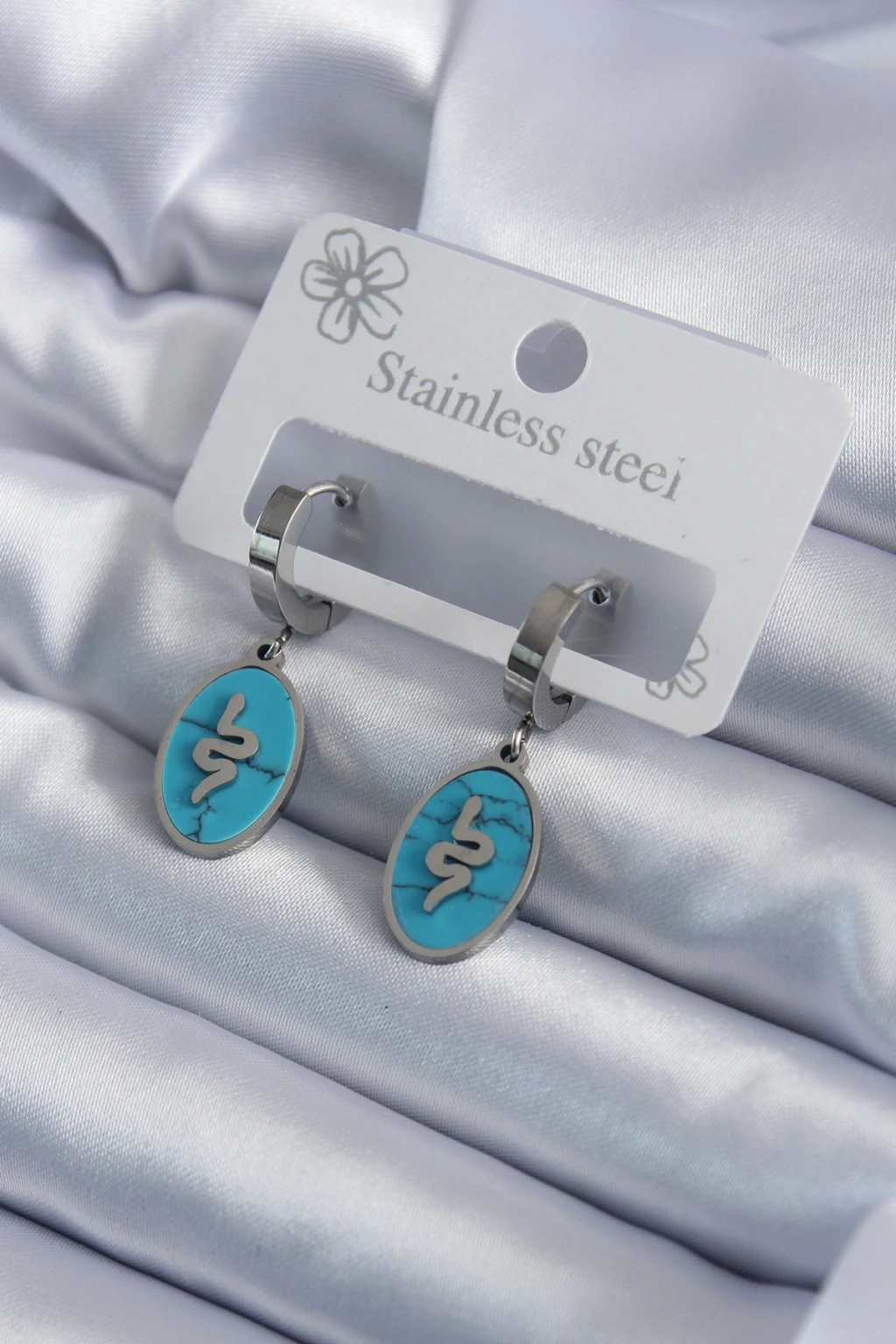 316L Çelik Gümüş Renk Oval Mavi Taşlı Yılan Figür Kadın Küpe - TJ-BKP7940