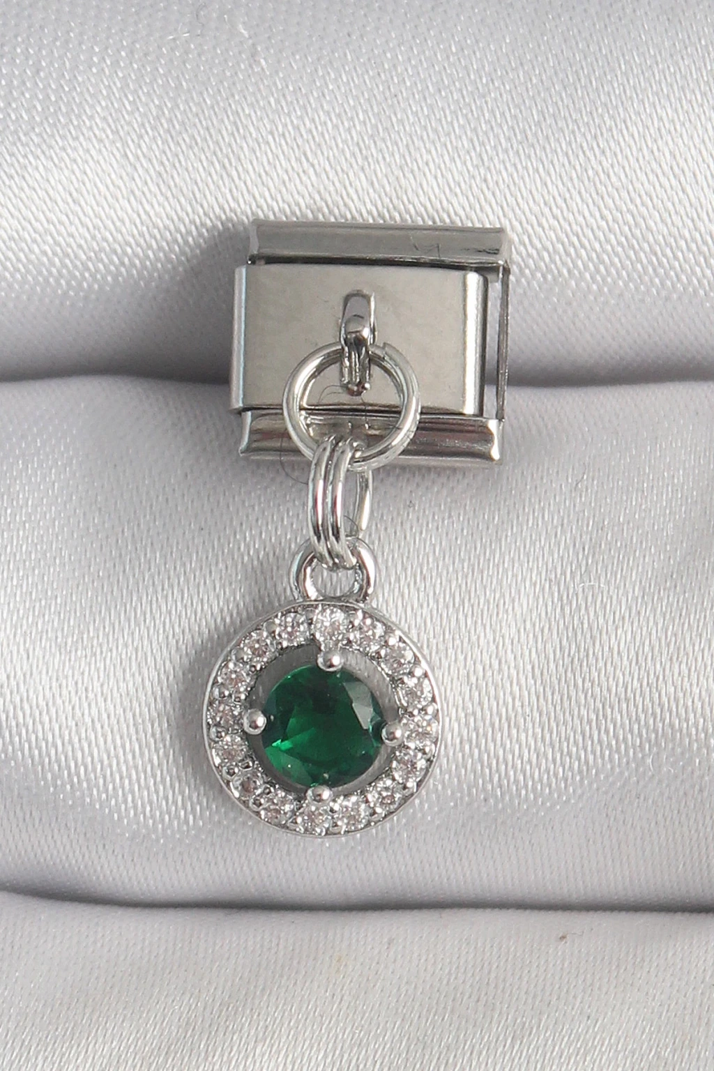 316L Çelik Gümüş Renk Sallantı Yeşil Zirkon Taşlı Nomination Charm - TJ-BC1376