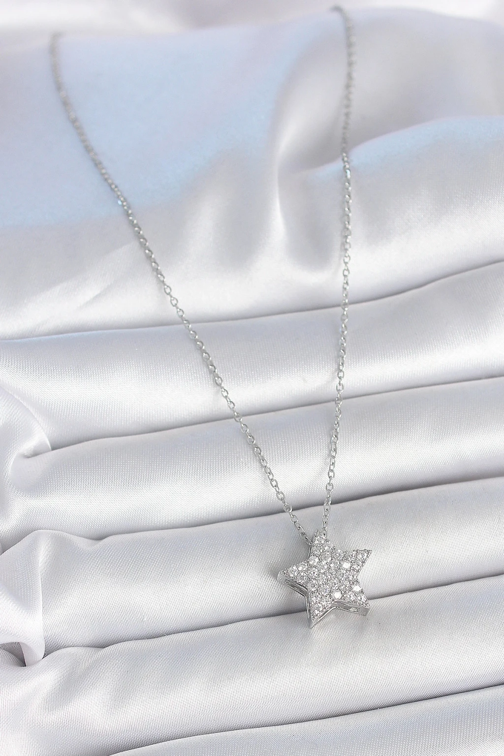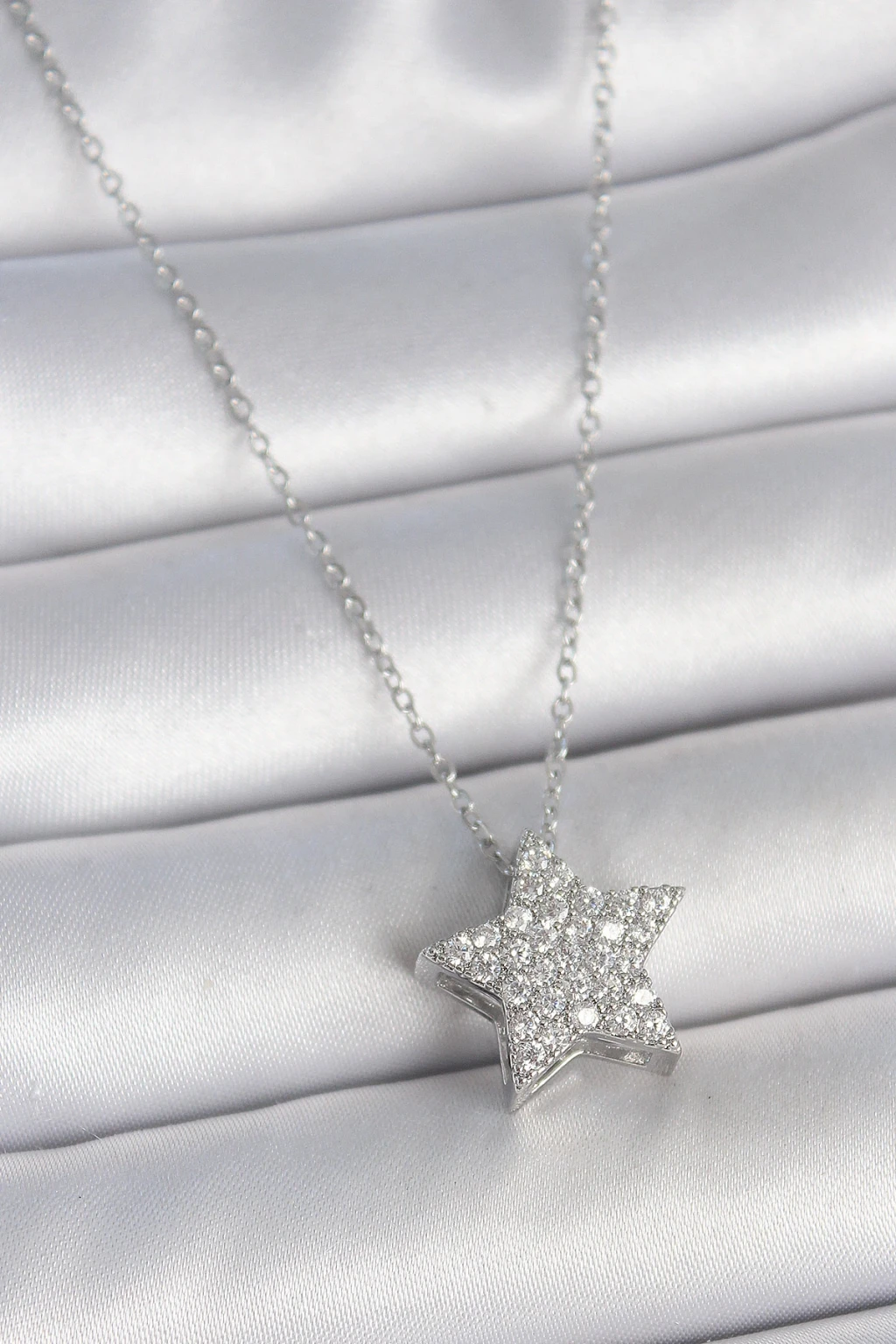 316L Çelik Gümüş Renk Zincir Zirkon Taşlı Yıldız Model Kadın Kolye - TJ-BKO10040