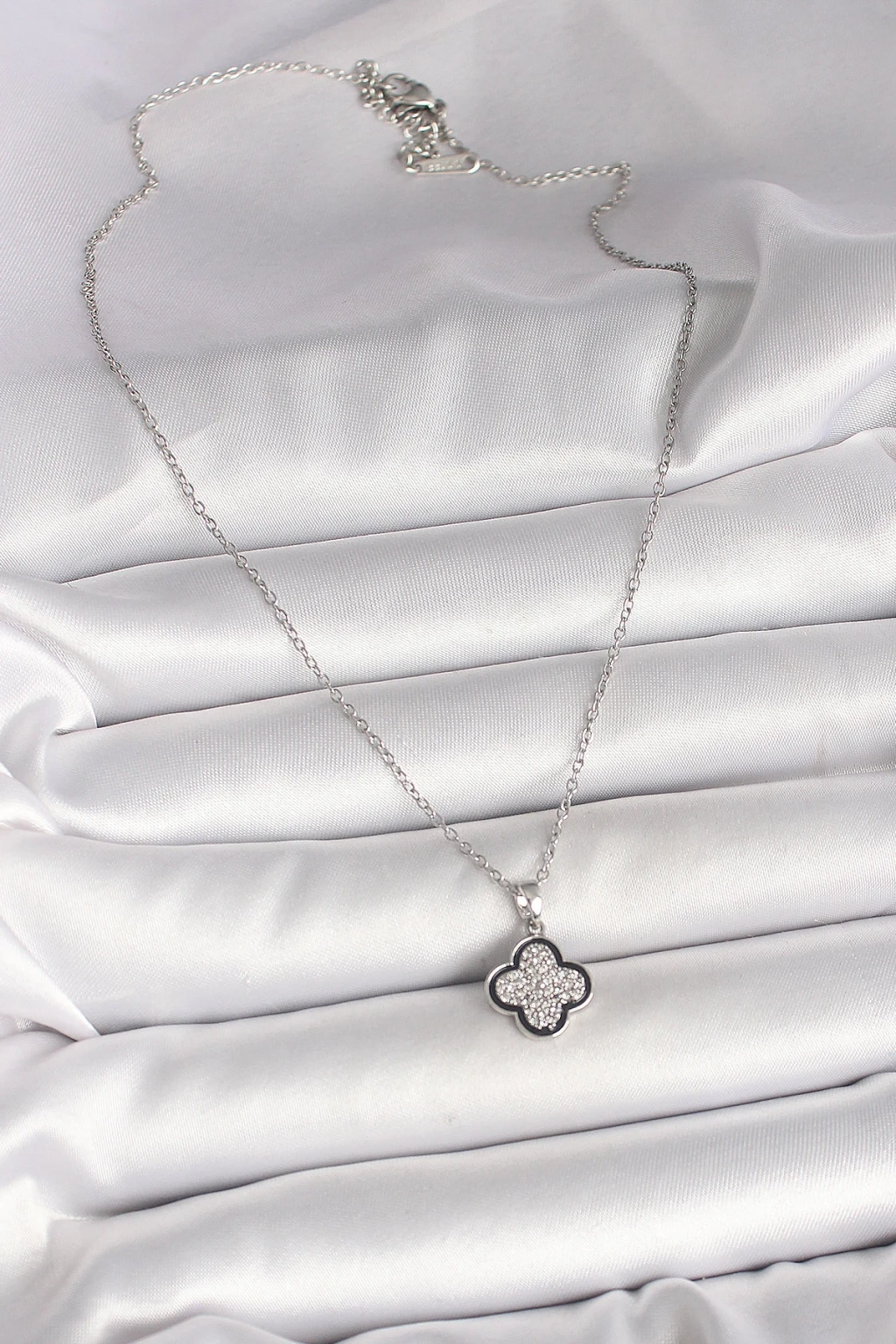 316L Çelik Gümüş Renk Zincir Zirkon Taşlı Yonca Model Kadın Kolye - TJ-BKO9975
