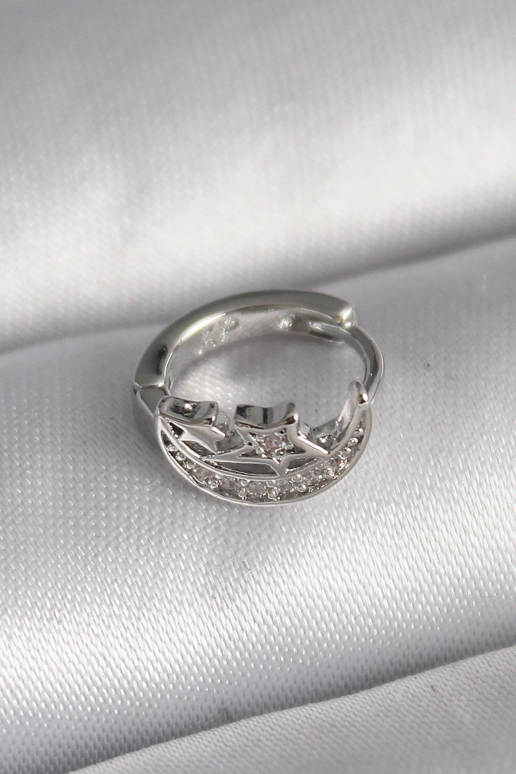 316L Çelik Gümüş Renk Zirkon Taşlı Ay Yıldız Model Tragus Piercing - TJ-PR1323