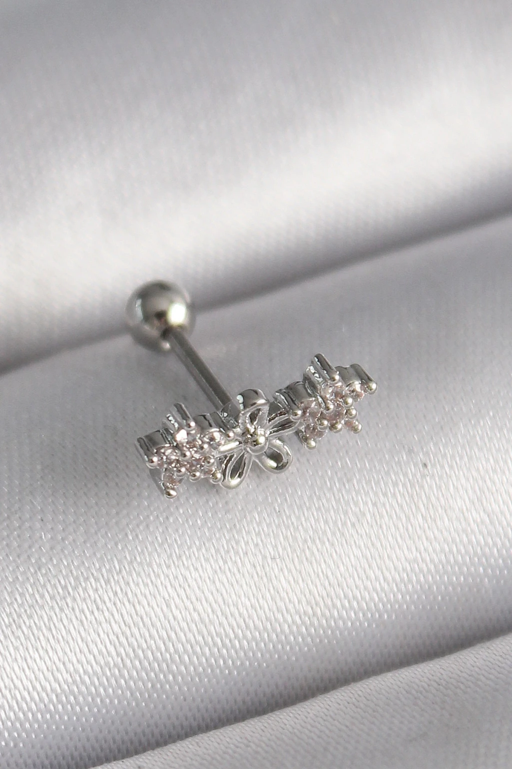 316L Çelik Gümüş Renk Zirkon Taşlı Çiçek Tragus Piercing - TJ-PR1247