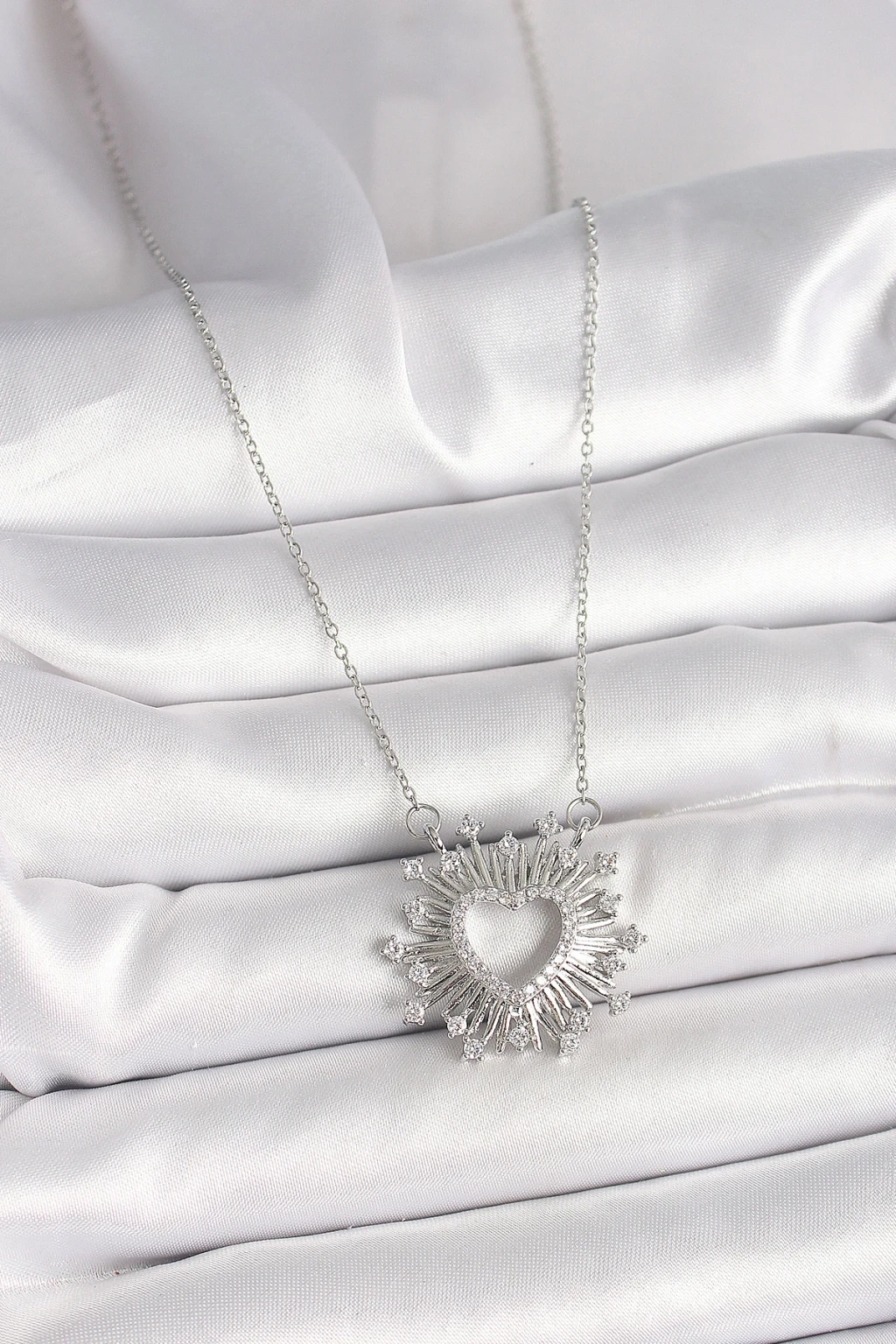 316L Çelik Gümüş Renk Zirkon Taşlı Kalp Model Kadın Kolye - TJ-BKO9919