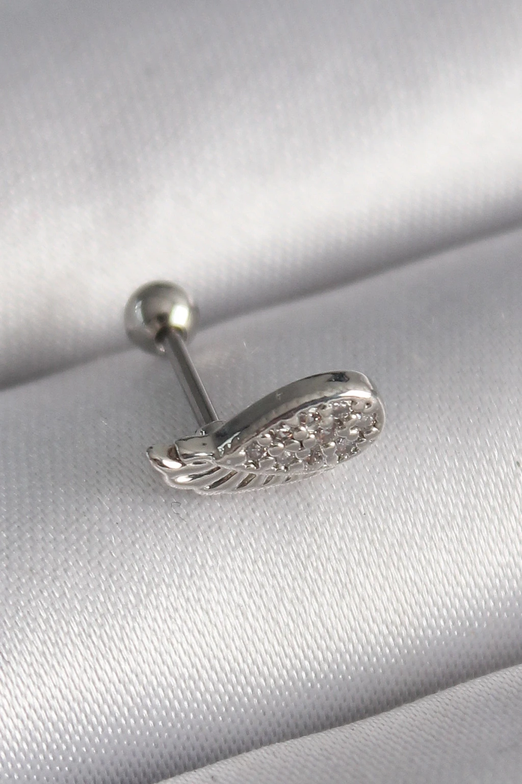 316L Çelik Gümüş Renk Zirkon Taşlı Kanat Tragus Piercing - TJ-PR1269