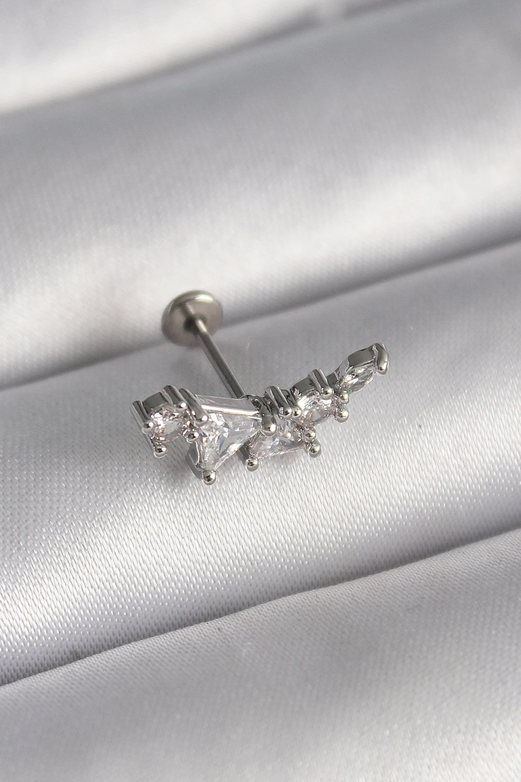 316L Çelik Gümüş Renk Zirkon Taşlı Tragus Piercing - TJ-PR1349