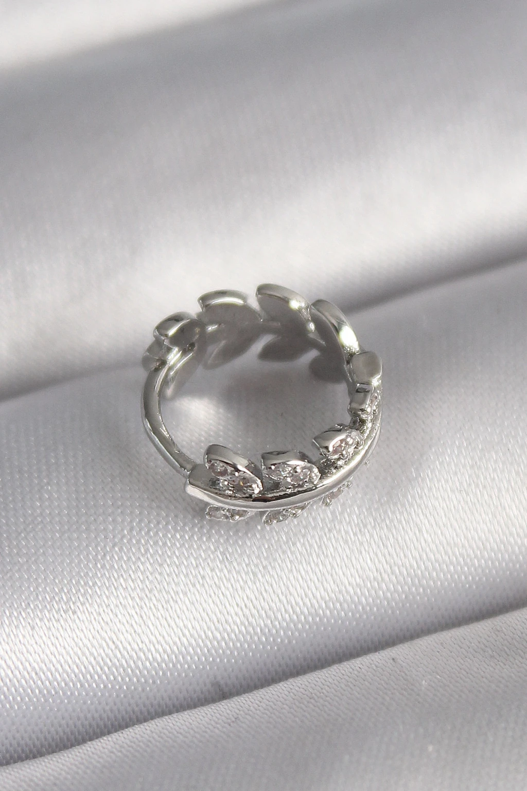 316L Çelik Gümüş Renk Zirkon Taşlı Yaprak Model Tragus Piercing - TJ-PR1303