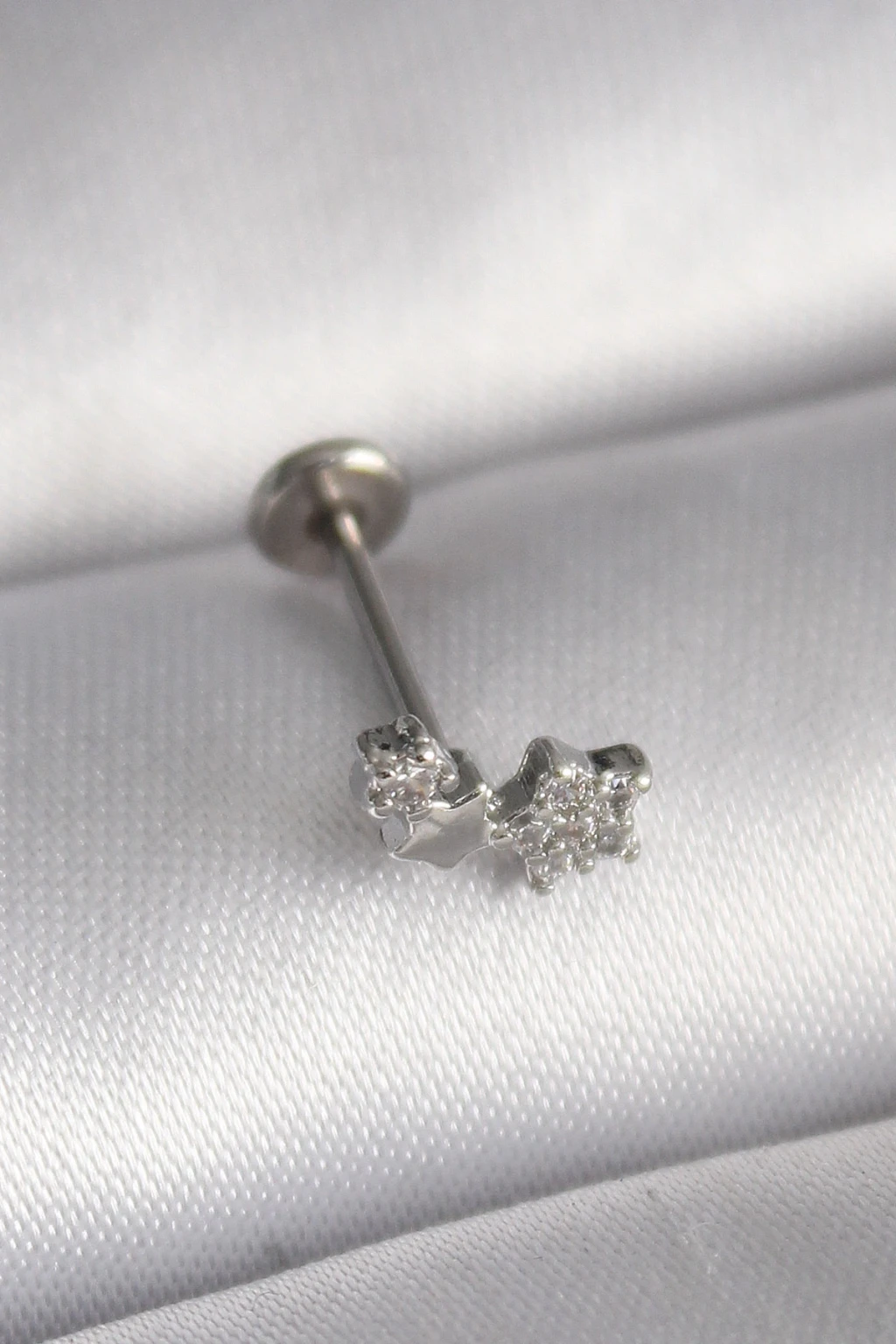 316L Çelik Gümüş Renk Zirkon Taşlı Yıldız Model Tragus Piercing - TJ-PR1353