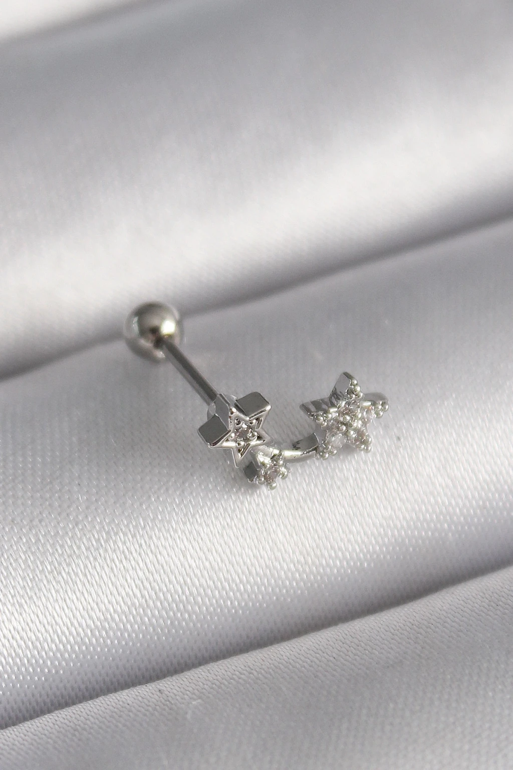 316L Çelik Gümüş Renk Zirkon Taşlı Yıldız Model Tragus Piercing - TJ-PR1353