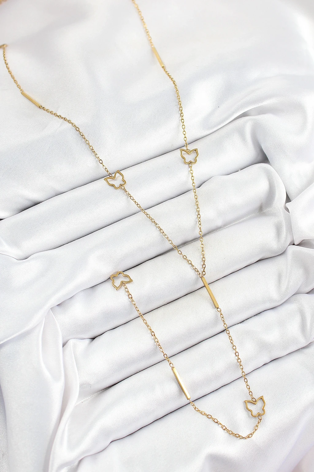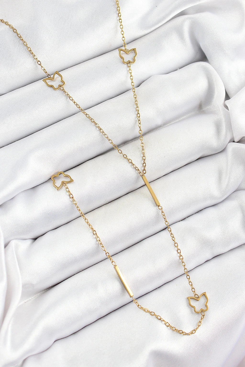 316L Çelik Kelebek Figürlü Y Model Gold Renk Kadın Kolye - TJ-BKO10331