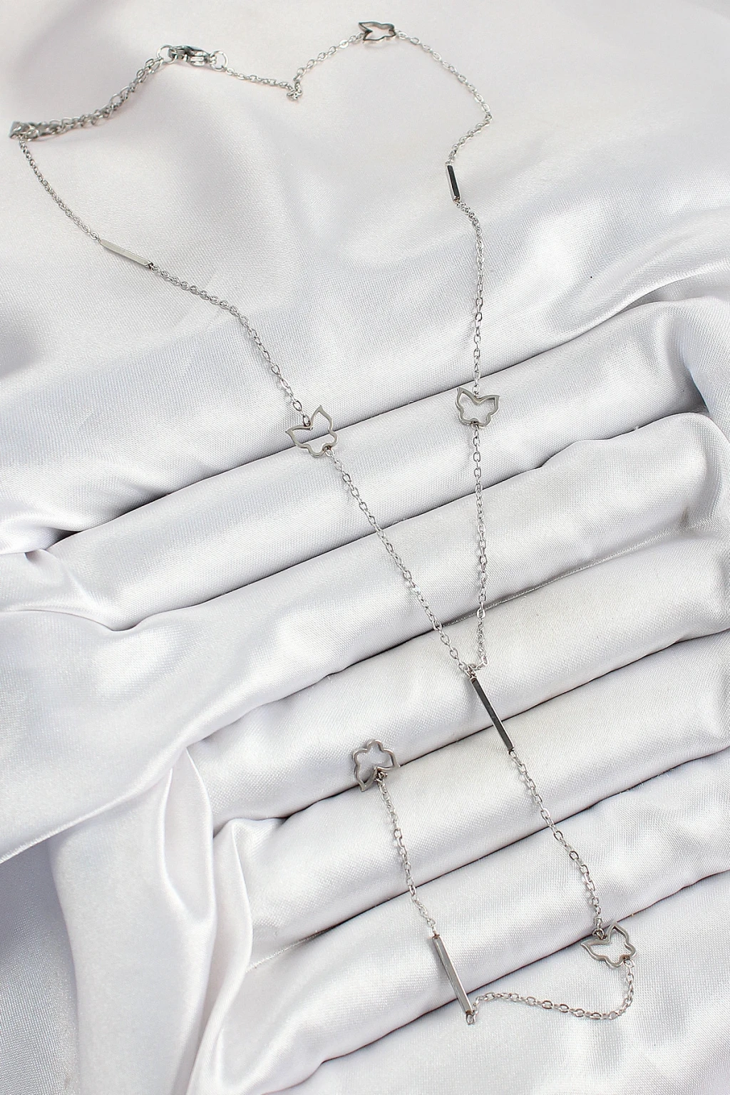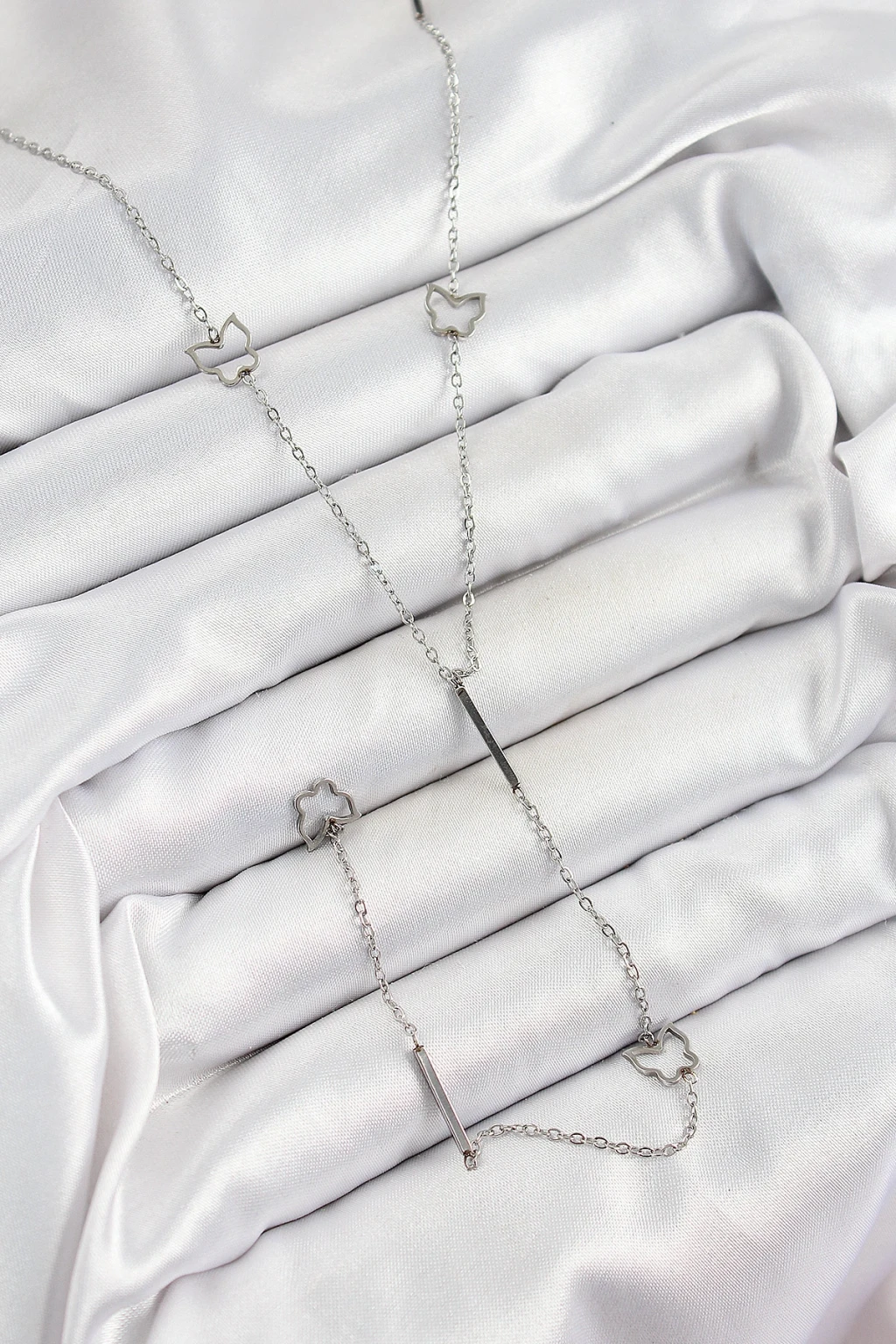 316L Çelik Kelebek Figürlü Y Model Gümüş Renk Kadın Kolye - TJ-BKO10330