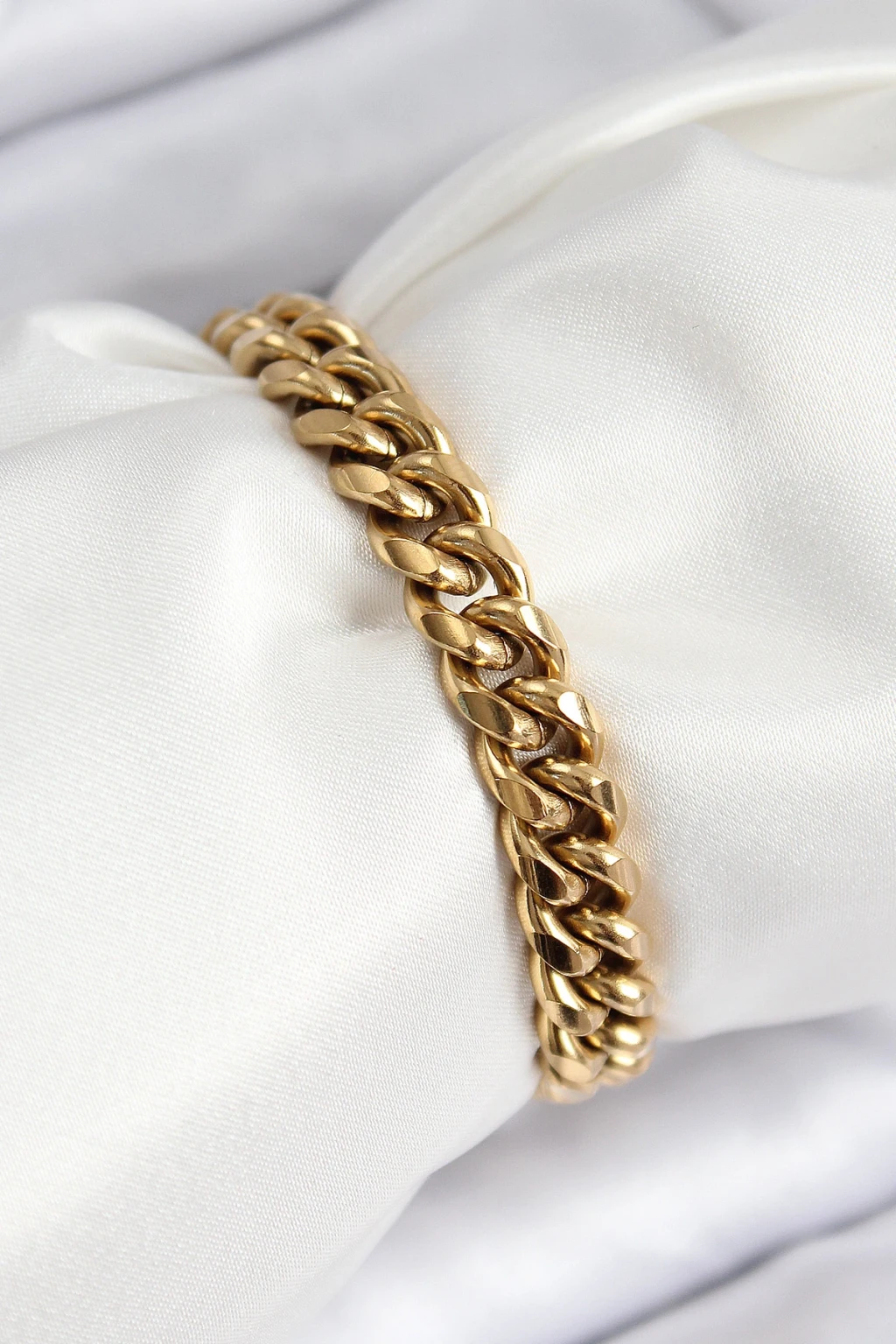 316L Çelik Klasik Kalın Zincir Model Gold Renk Kadın Bileklik - TJ-BB7791