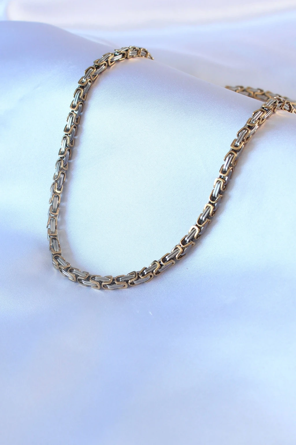 316L Çelik Çift Renk İnce Arnavut Zinciri Tasarımlı Kolye - TJ-ERK1366
