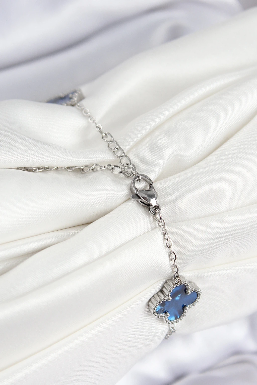 316L Çelik Sedefli Lacivert Gümüş Renk Yonca Kadın Bileklik - TJ-BB7671
