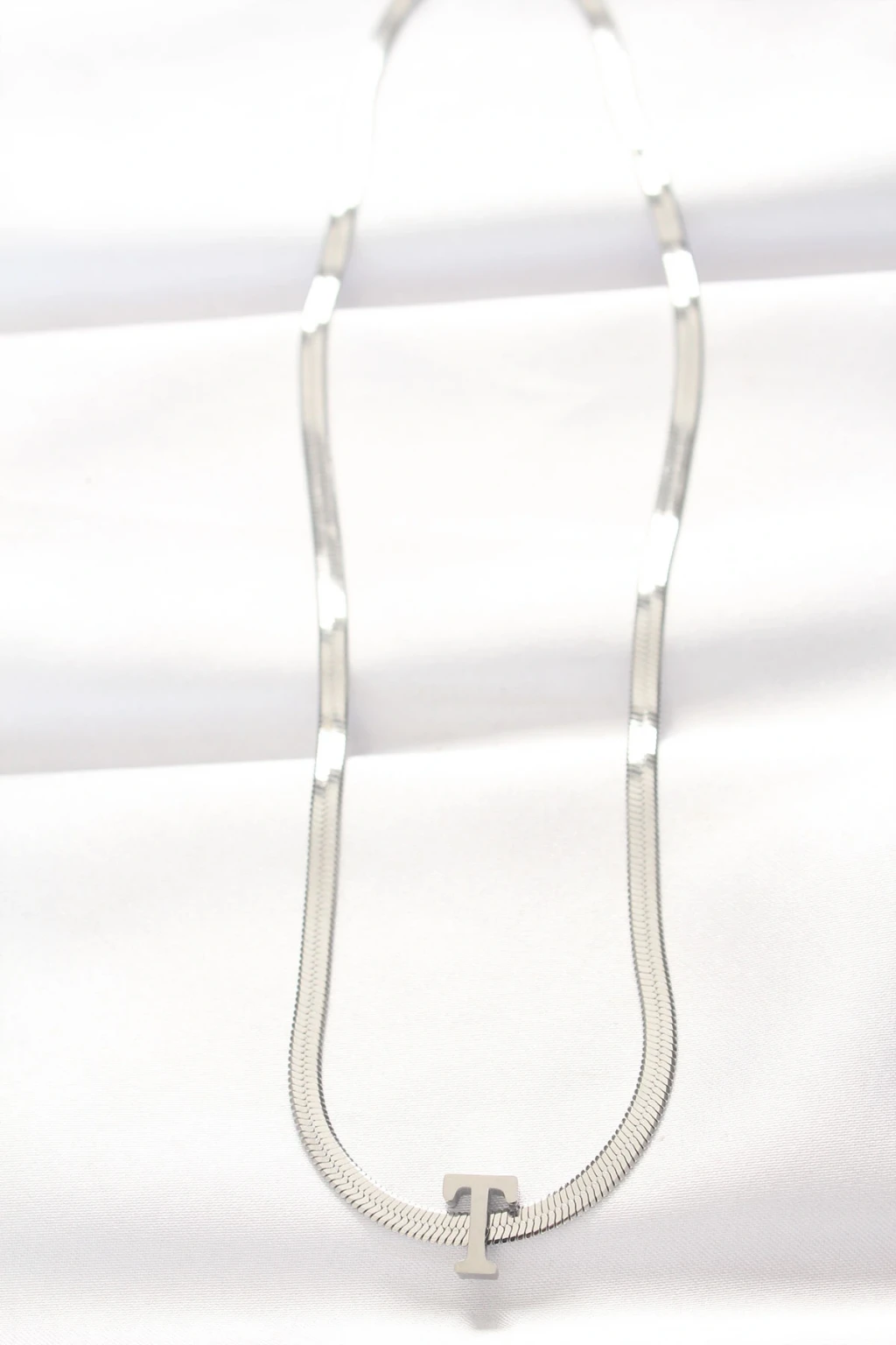 316L Çelik T Harfli Silver Renk İtalyan Zincirli Kolye - TJ-BKO8535