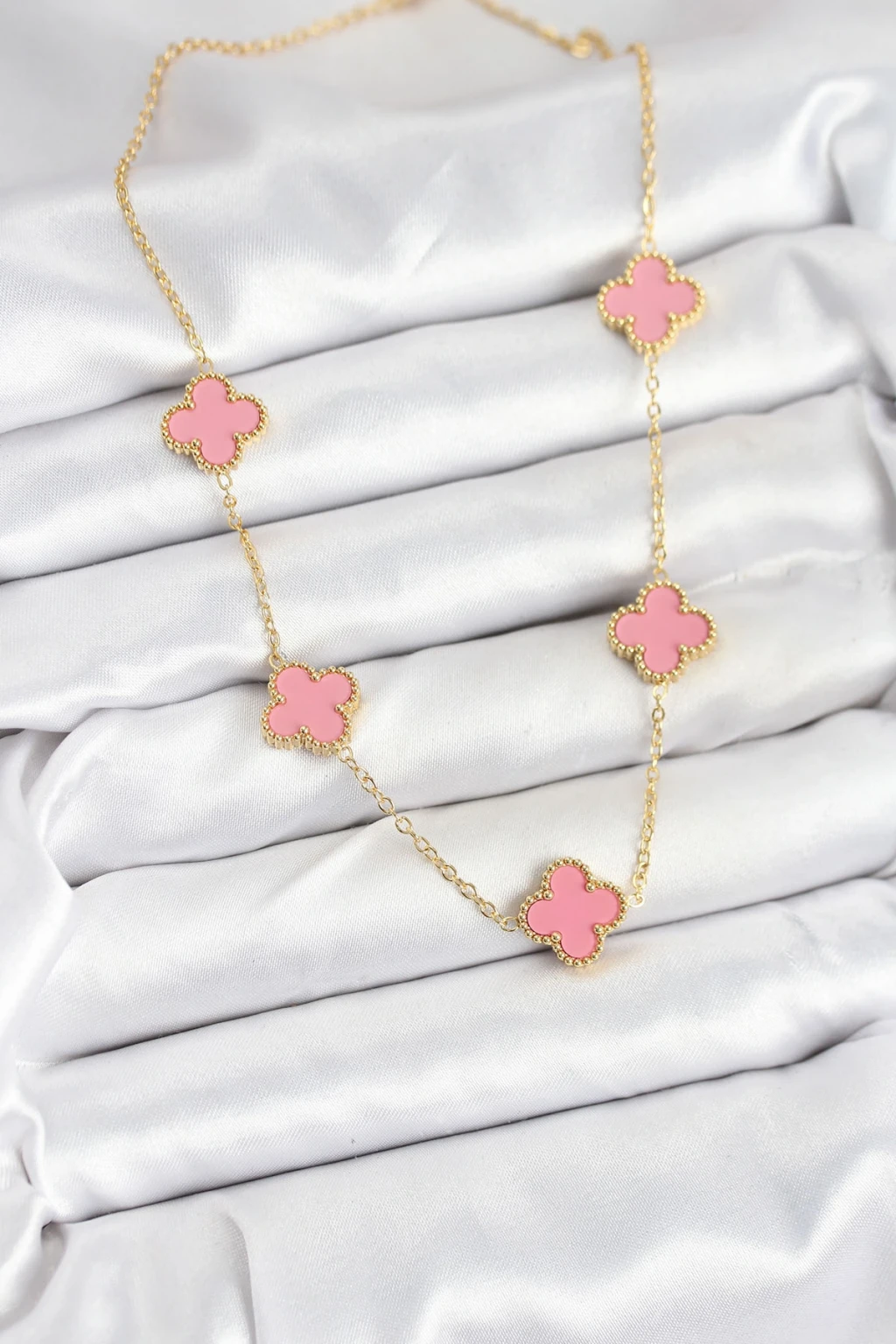 316L Çelik Zincir Gold Pembe Renk Yonca Kadın Kolye - TJ-BKO10583