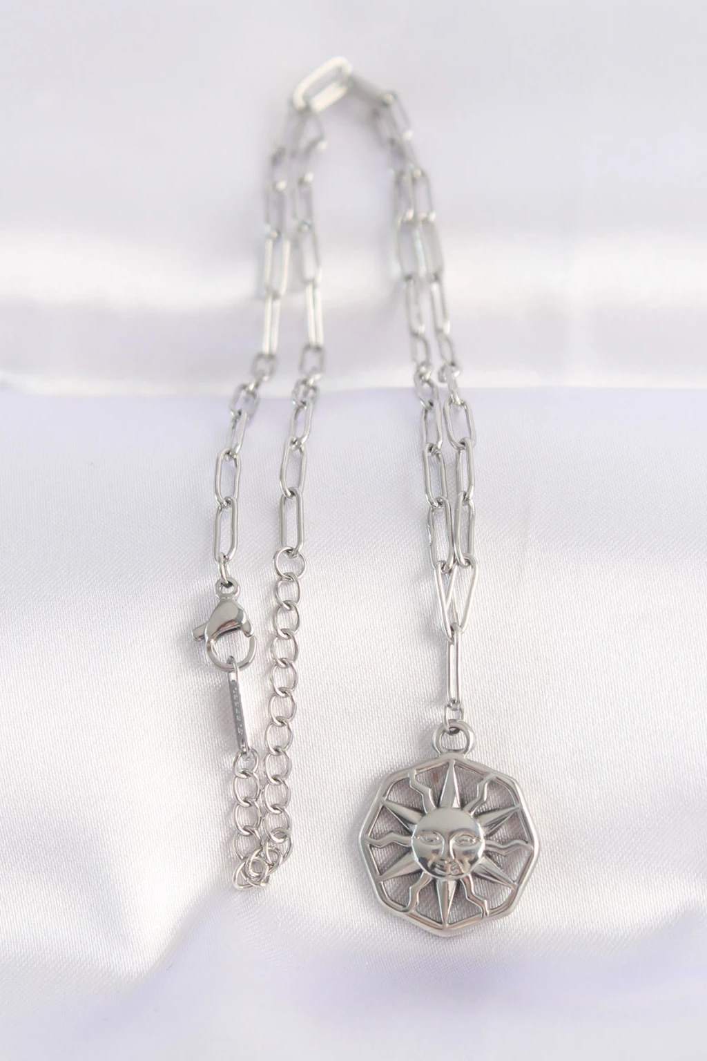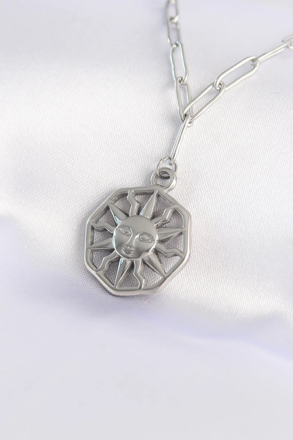 316L Çelik Zincir Gümüş Renk Güneş Kolye - TJ-BKO8645