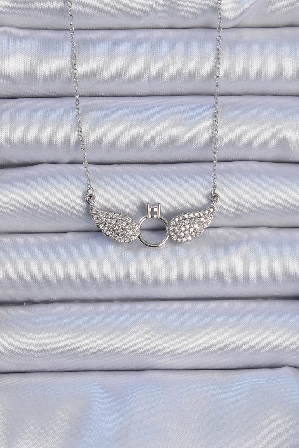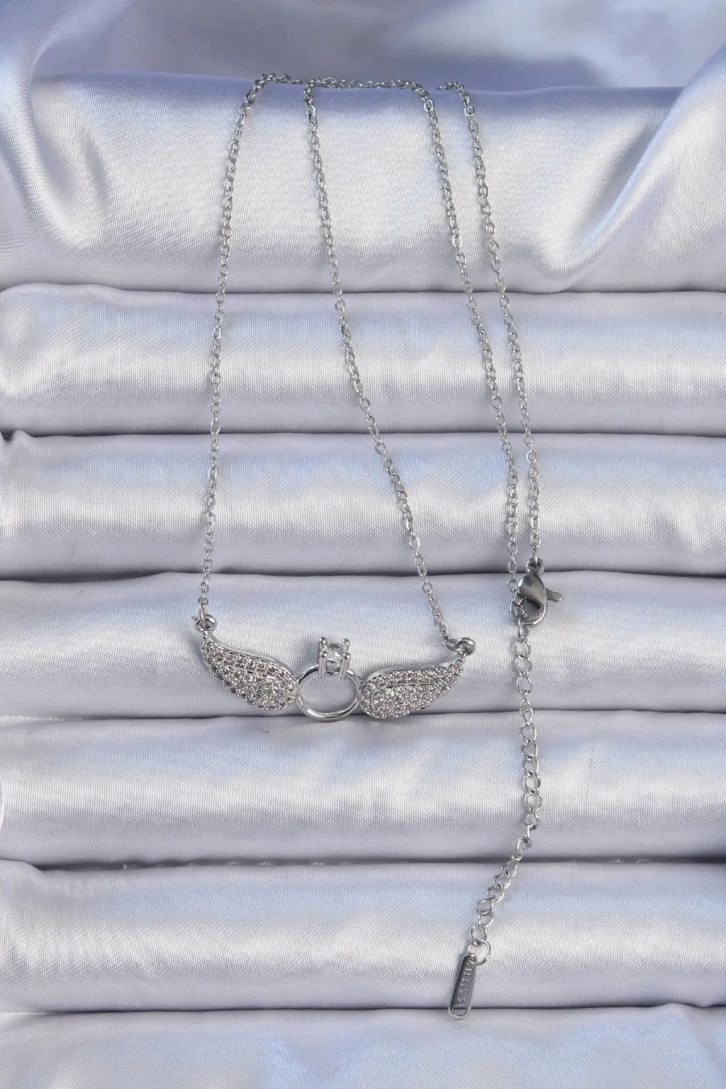316L Çelik Zincir Gümüş Renk Kanatlı Tektaş Kolye - TJ-BKO9078