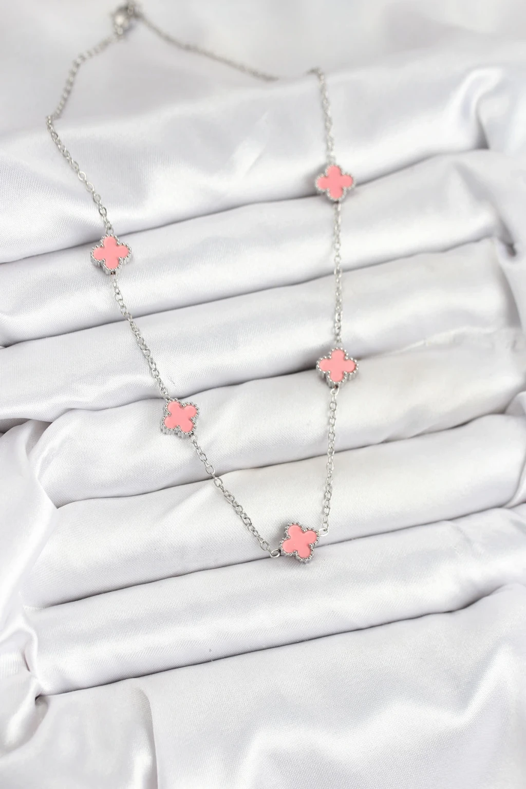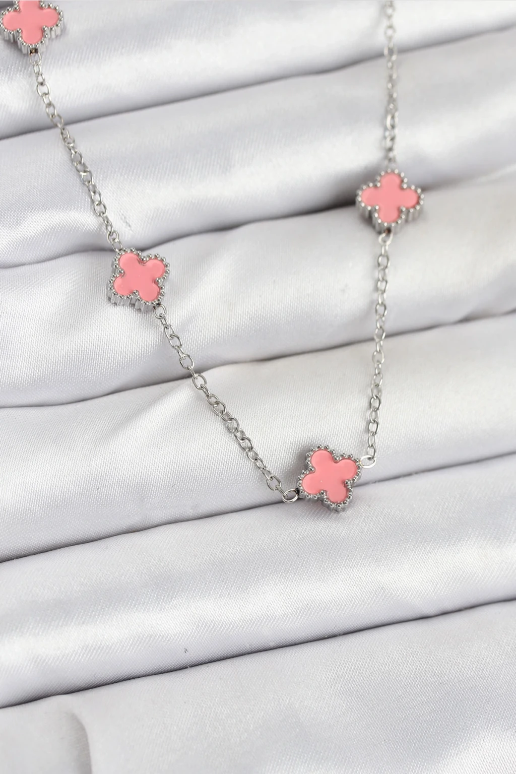 316L Çelik Zincir Gümüş Renk Pembe Baby Boy Yonca Kadın Kolye - TJ-BKO10579