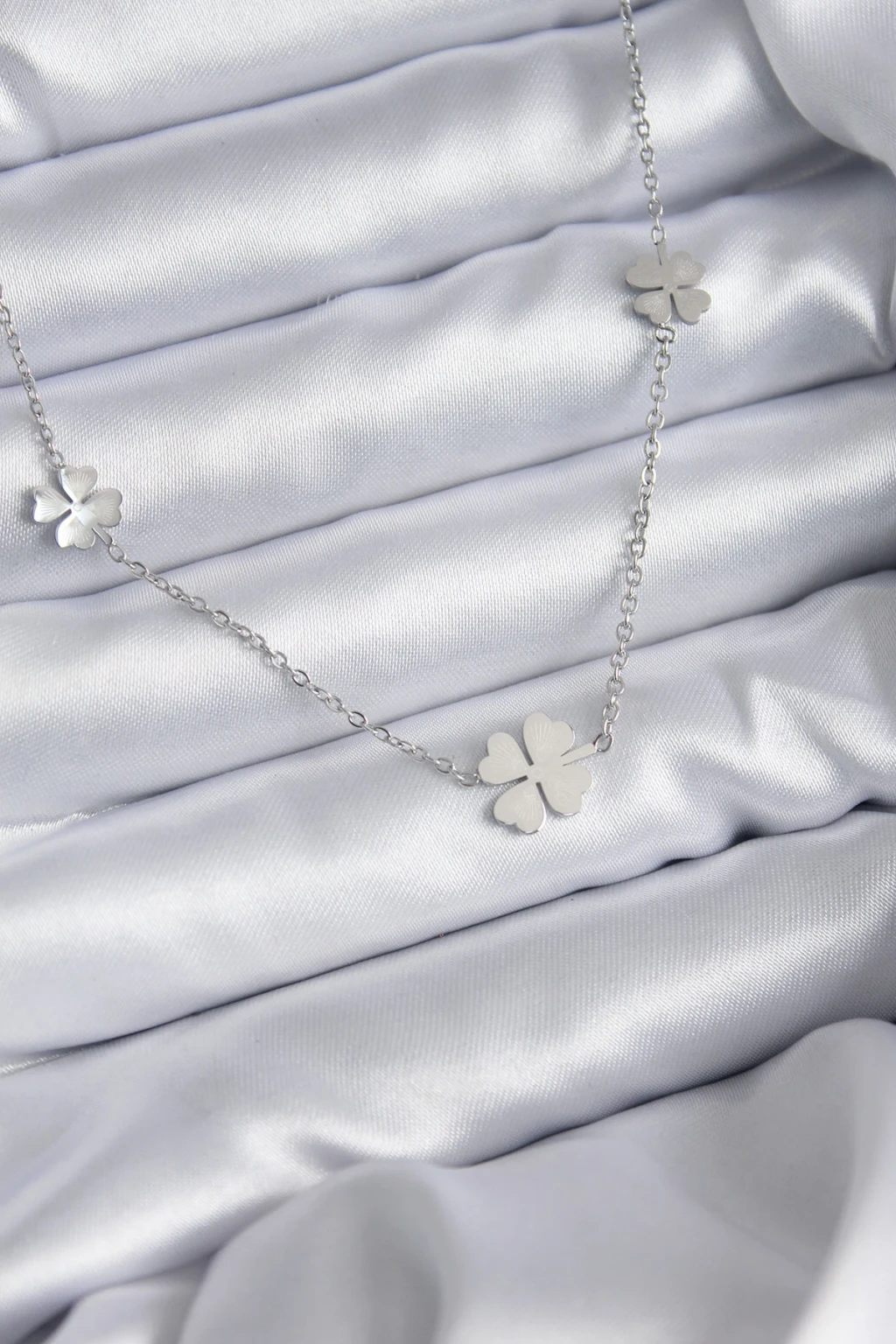 316L Çelik Zincir Gümüş Renk Yonca Model Kadın Kolye - TJ-BKO7870