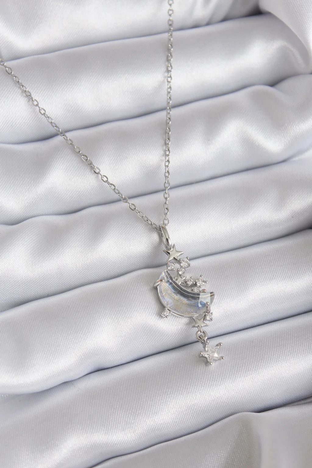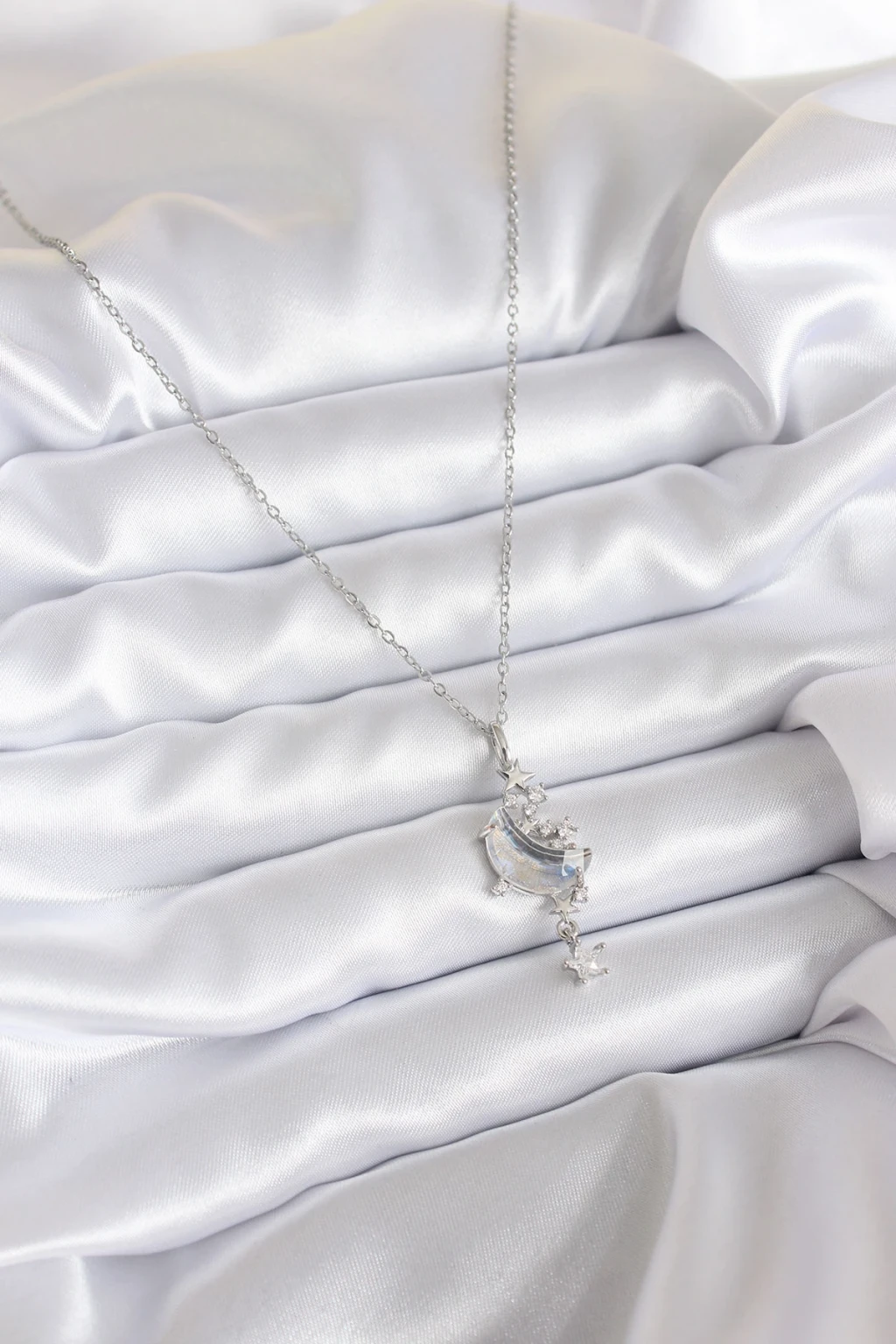 316L Çelik Zincir Gümüş Renk Zirkon Taşlı Ay Model Sallantı Yıldız Detay Kadın Kolye - TJ-BKO7807