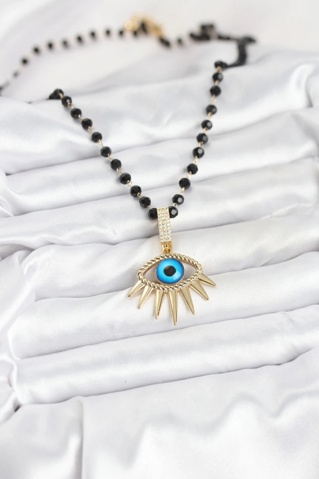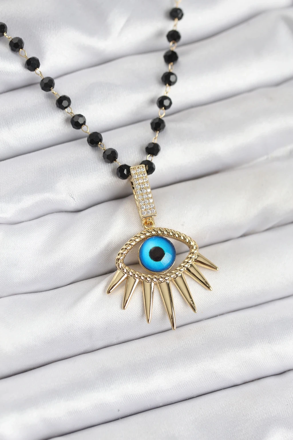 316L Çelik Zincir Kristal Boncuklu Göz Model Kadın Kolye - TJ-BKO10564