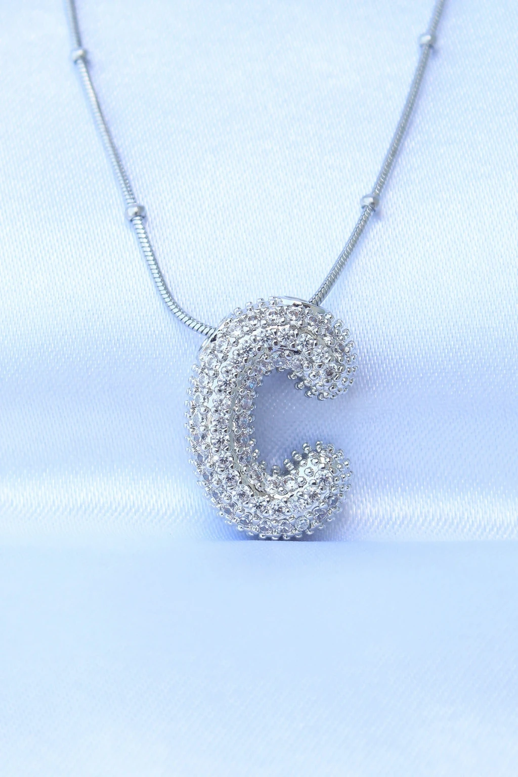 316L Çelik Zincirli Zirkon Taşlı C Harfli Gümüş Renk Bubble Kolye - TJ-BKO8716