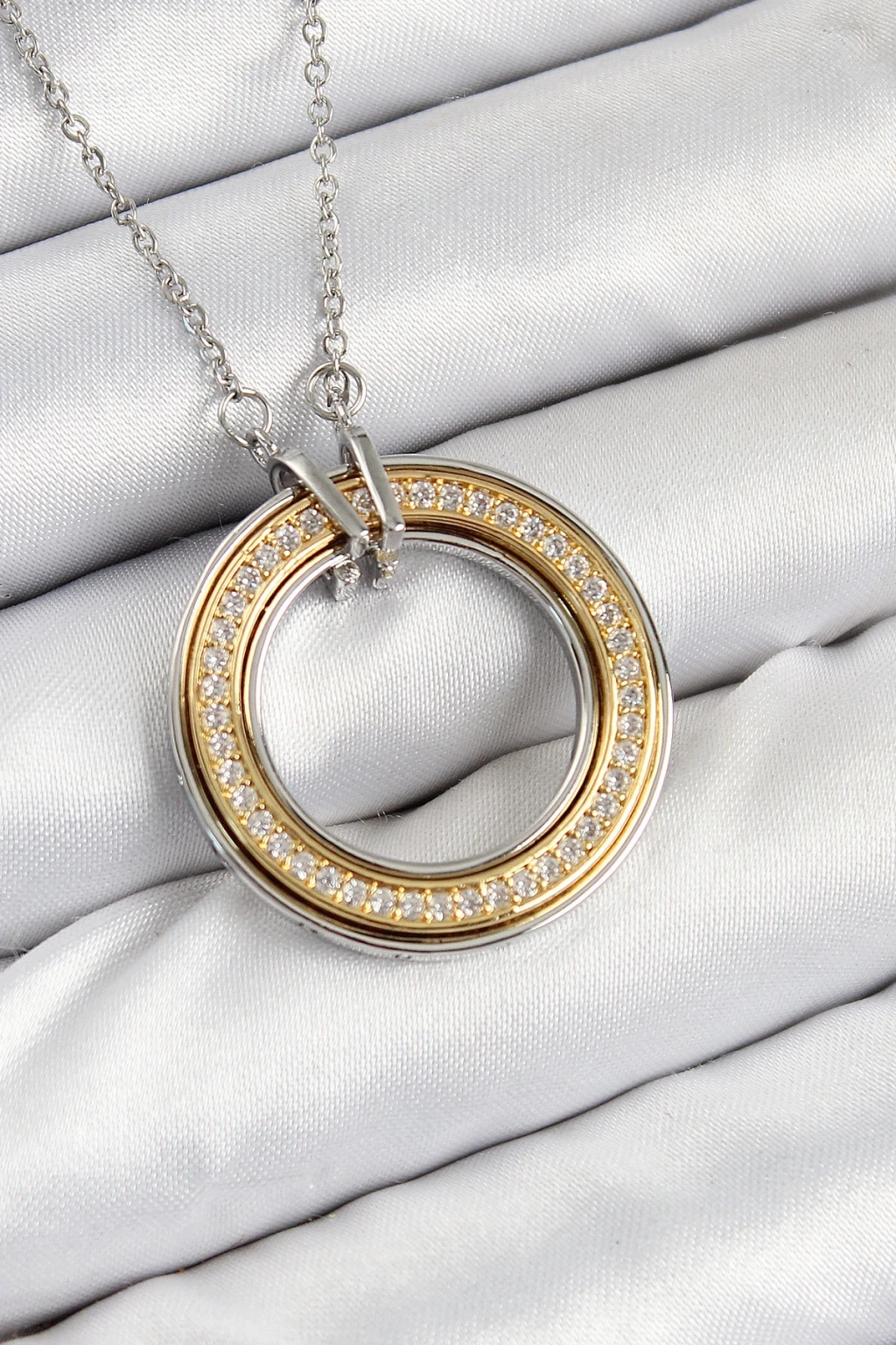 316L Çelik Zirkon Taşlı Dönen Daire Model Gold Ve Gümüş Renk Kadın Kolye - TJ-BKO10479