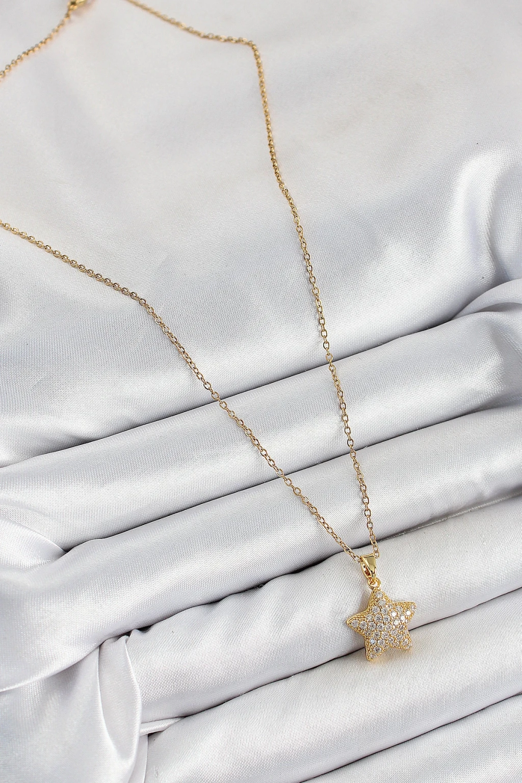 316L Çelik Zirkon Taşlı Yıldız Model Gold Renk Kadın Kolye - TJ-BKO10351